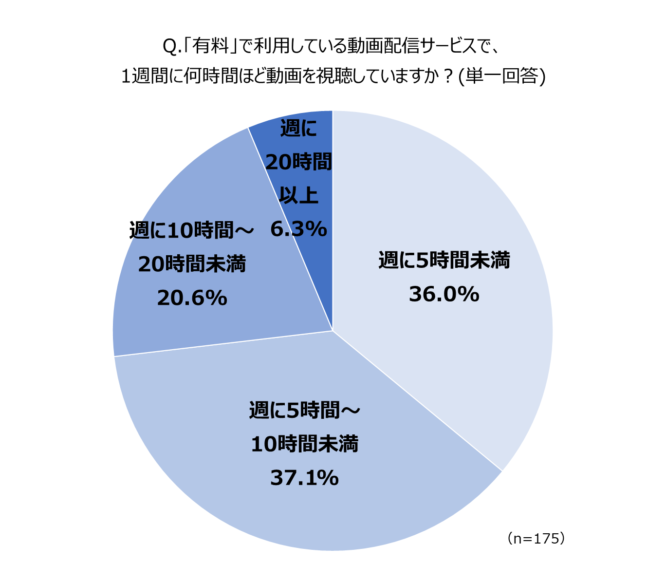 Q2.「有料」で利用している動画配信サービスで、1週間に何時間ほど動画を視聴していますか?(単一回答)