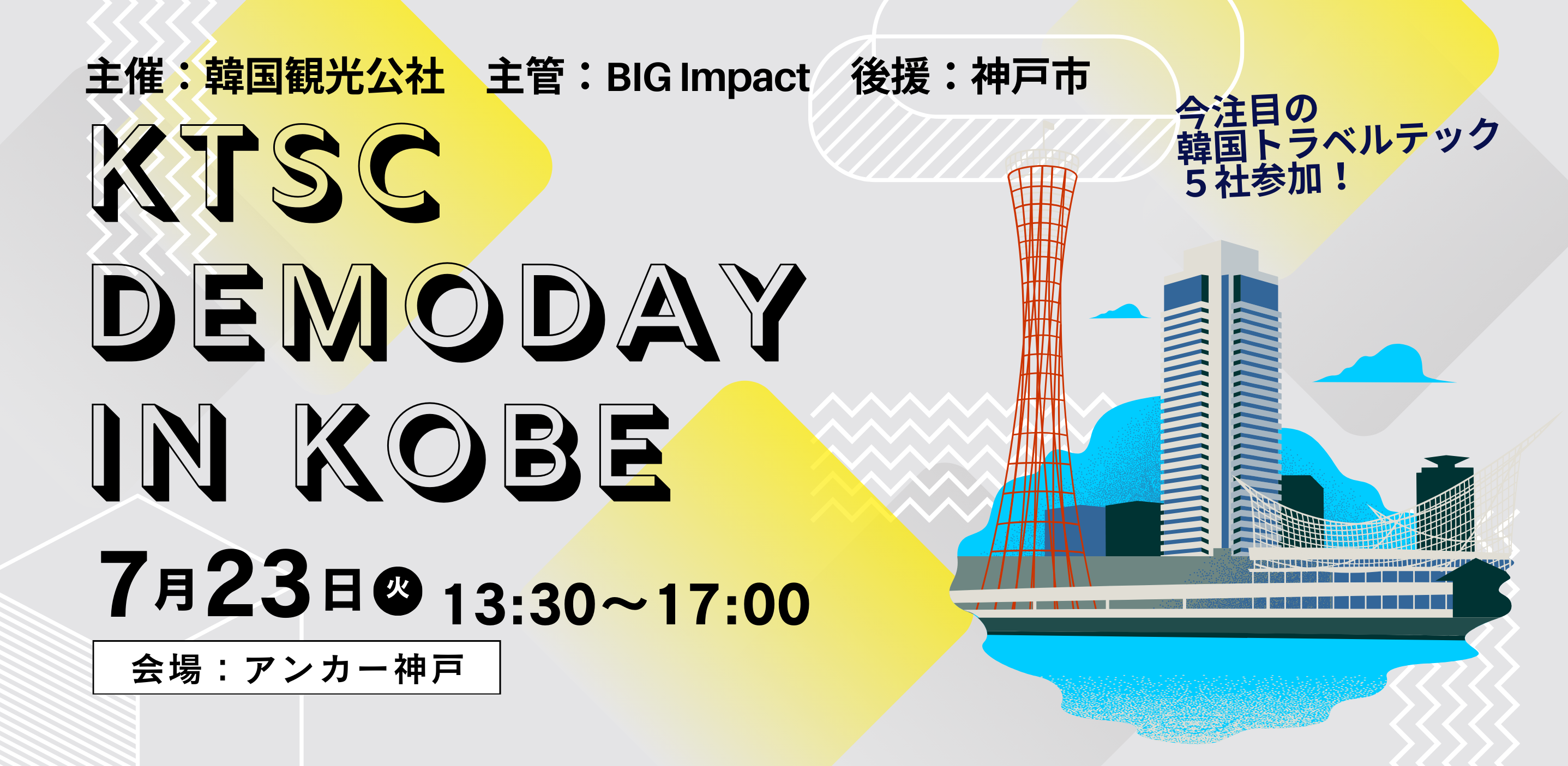 今回、BIG Impactは、KTOの日本進出戦略パートナーとして、神戸市の後援の下、KTOと共に韓国優秀トラベルテック企業5社を紹介するDemoDayを企画しました。