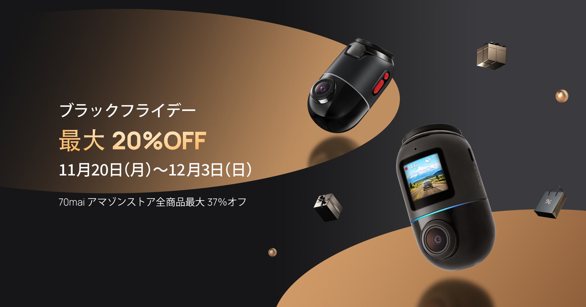 ドライブレコーダーの開発・販売会社70maiが、23年のAmazonブラックフライデーに緊急参戦!期間は11月20日(月)から12月3日(日)まで。期間限定のキャンペーンでは、クラウドファンディングサイト「makuake」で3680万円の資金調達に成功した360°フルビュードライブレコーダー「70mai Dash Cam Omni」、世界年間出荷台数50万を突破、コスパ最高の人気商品「70mai Dash Cam A500S」(旧名:70mai Dash Cam Pro Plus+)などを含め、70maiアマゾンストア全商品が最大37%オフとなります。