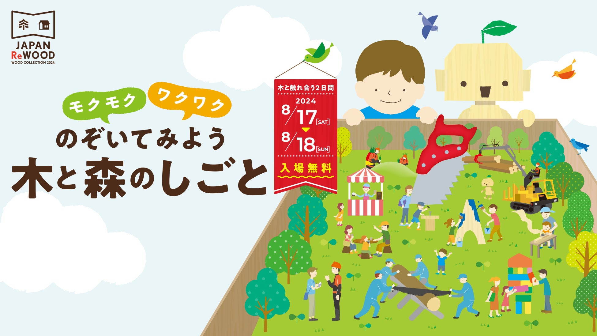 WOODコレクション実行委員会(後援︓林野庁ほか)は、国産木材の価値再発見と普及に向けて、国産木材に特化した展示商談会WOODコレクション2024「JAPAN ReWOOD」を、2024(令和6)年8月17日(土)~18日(日)の2日間、東京ビッグサイト 南1・2ホールおよびシンボルプロムナード公園 花の広場・石と光の広場にて開催いたします。