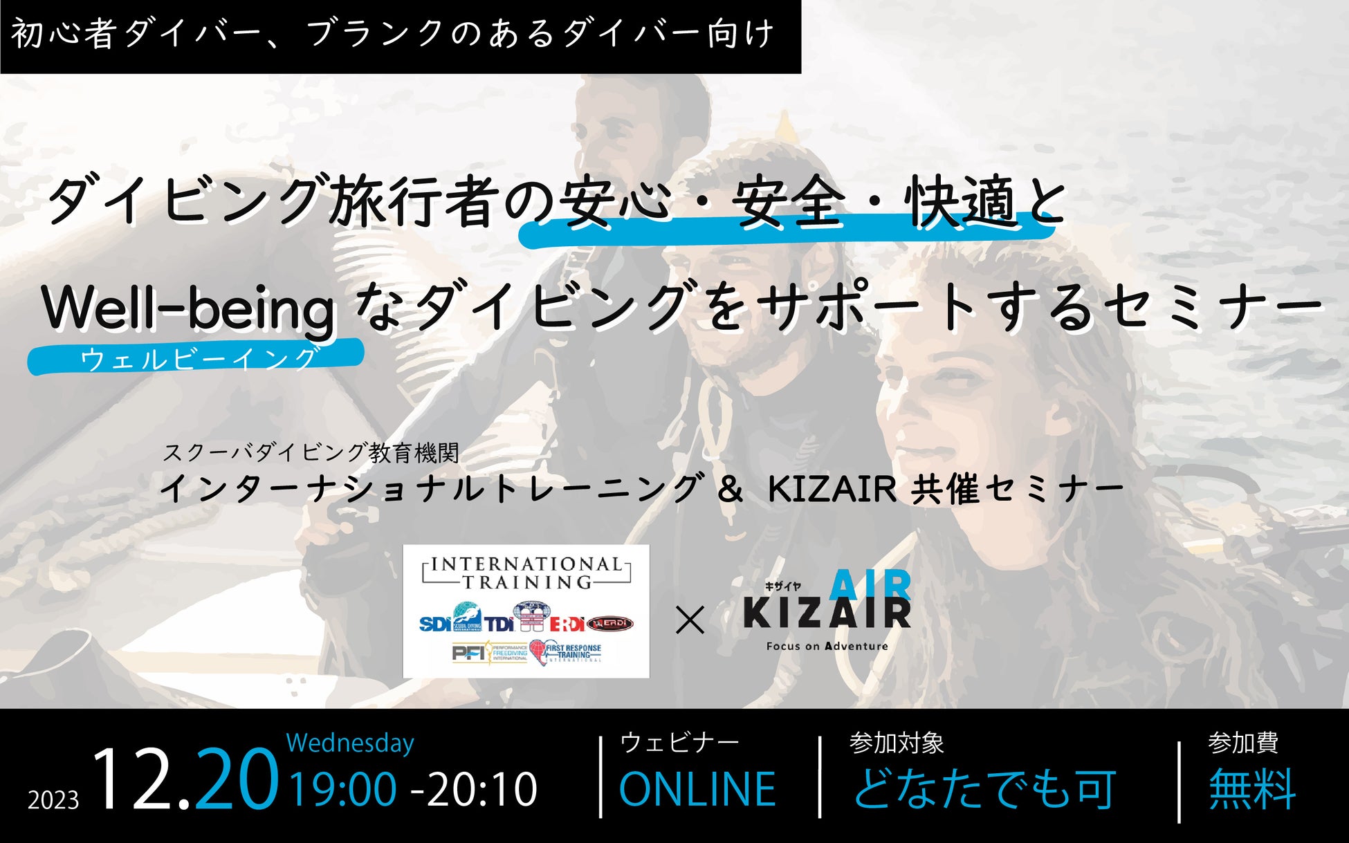 「ダイビング旅⾏者の安⼼・安全・快適と、Well-Beingなダイビングをサポートする共催セミナー」