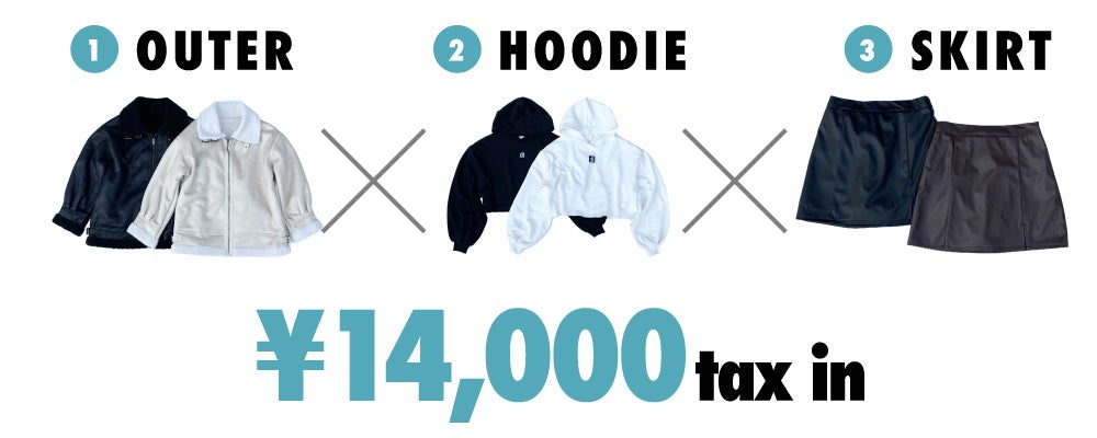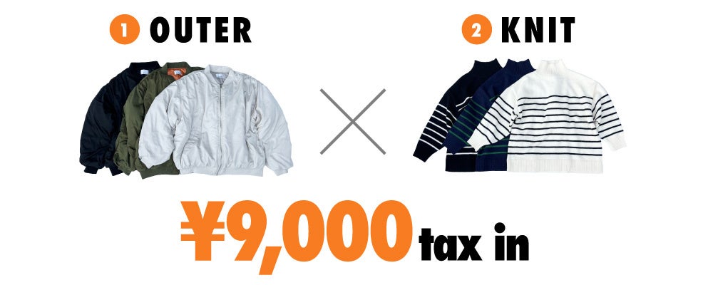 対象のアウター2型、トップス2型、ボトム1型より