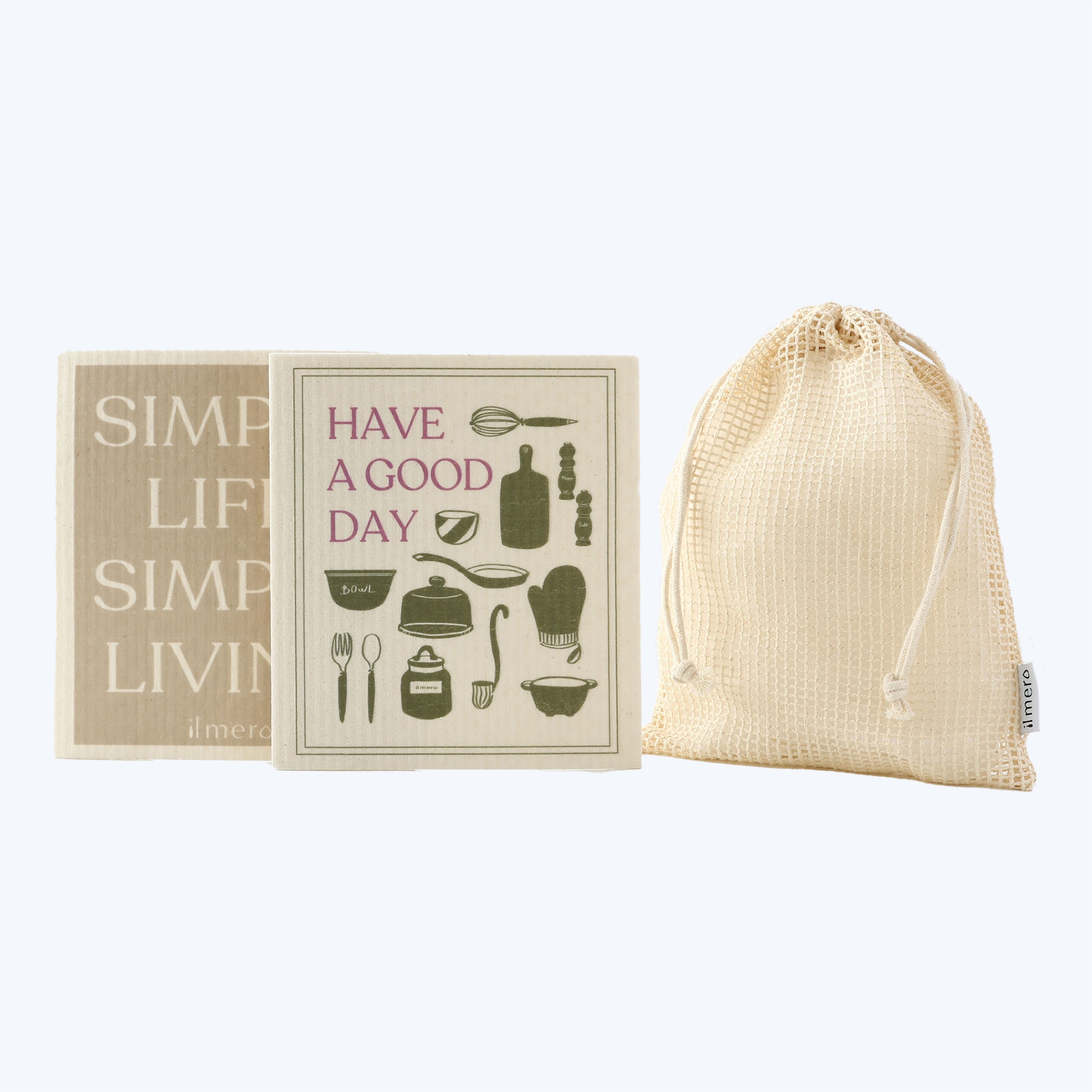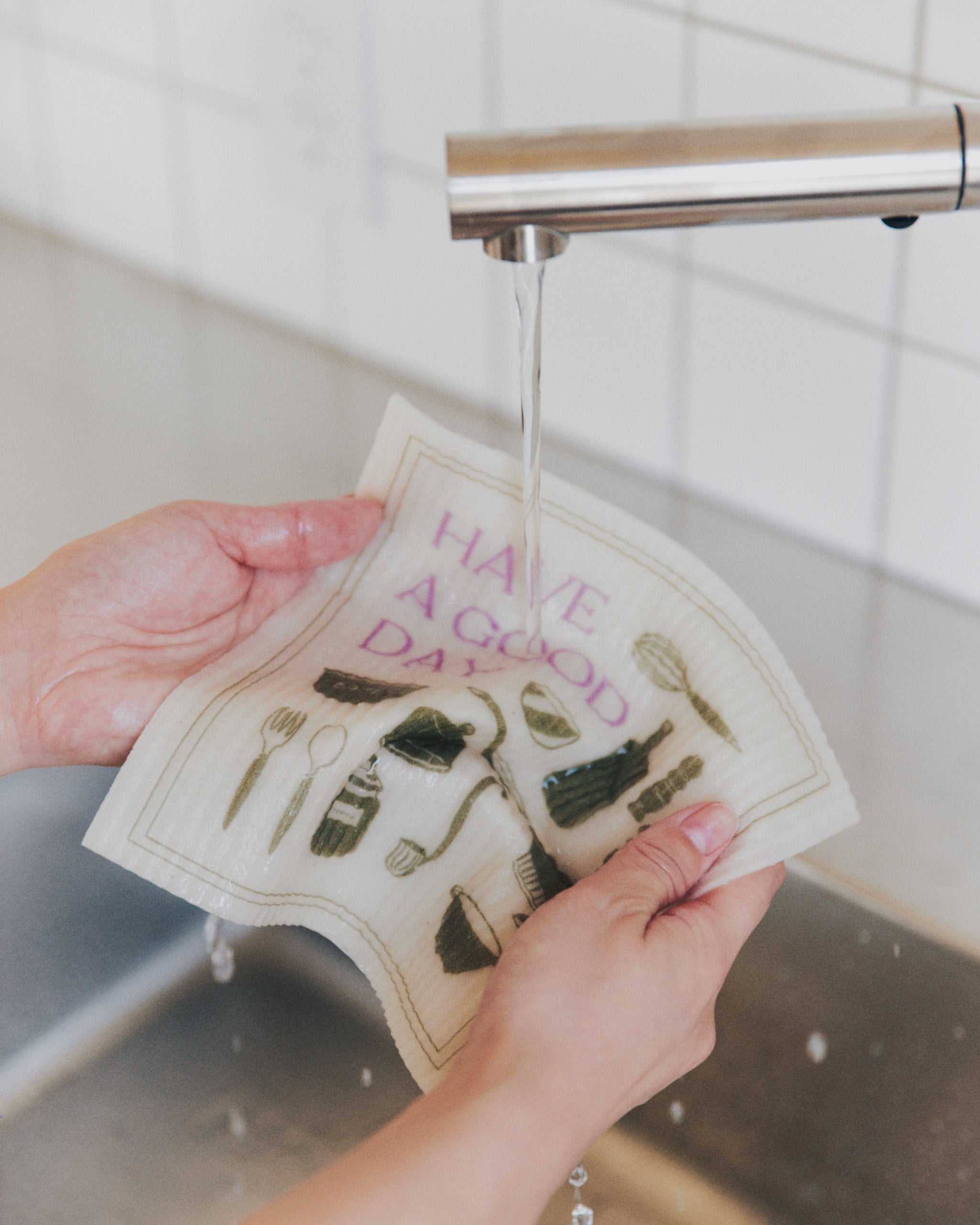 セルロースとコットンから作られ、吸水性がよく、乾きやすく毛羽立ちしにくいのが特徴です。キッチンで台ふきんや水切りとして使ったり、洗面台や洗濯機周りの水滴の除去などにも大活躍です。