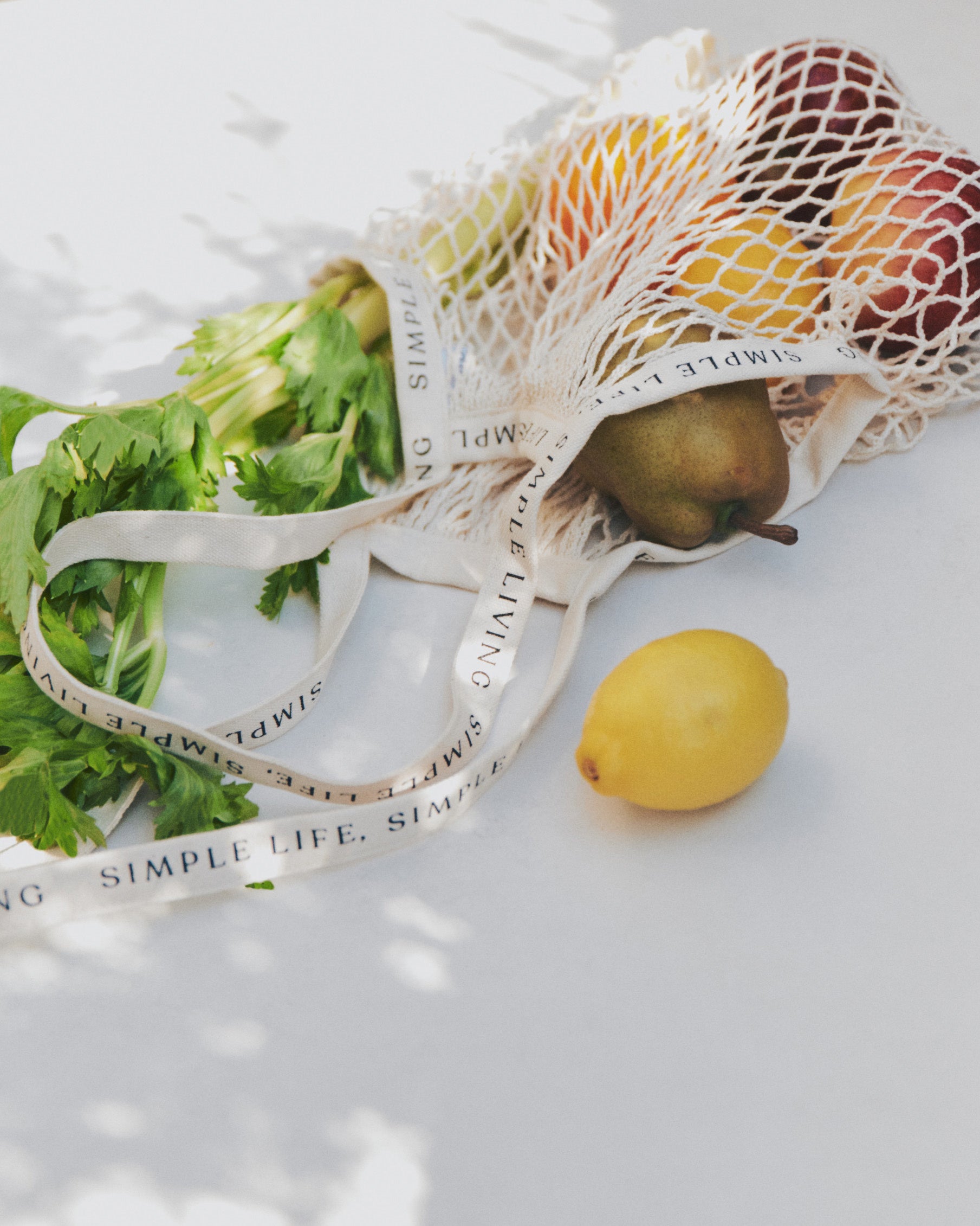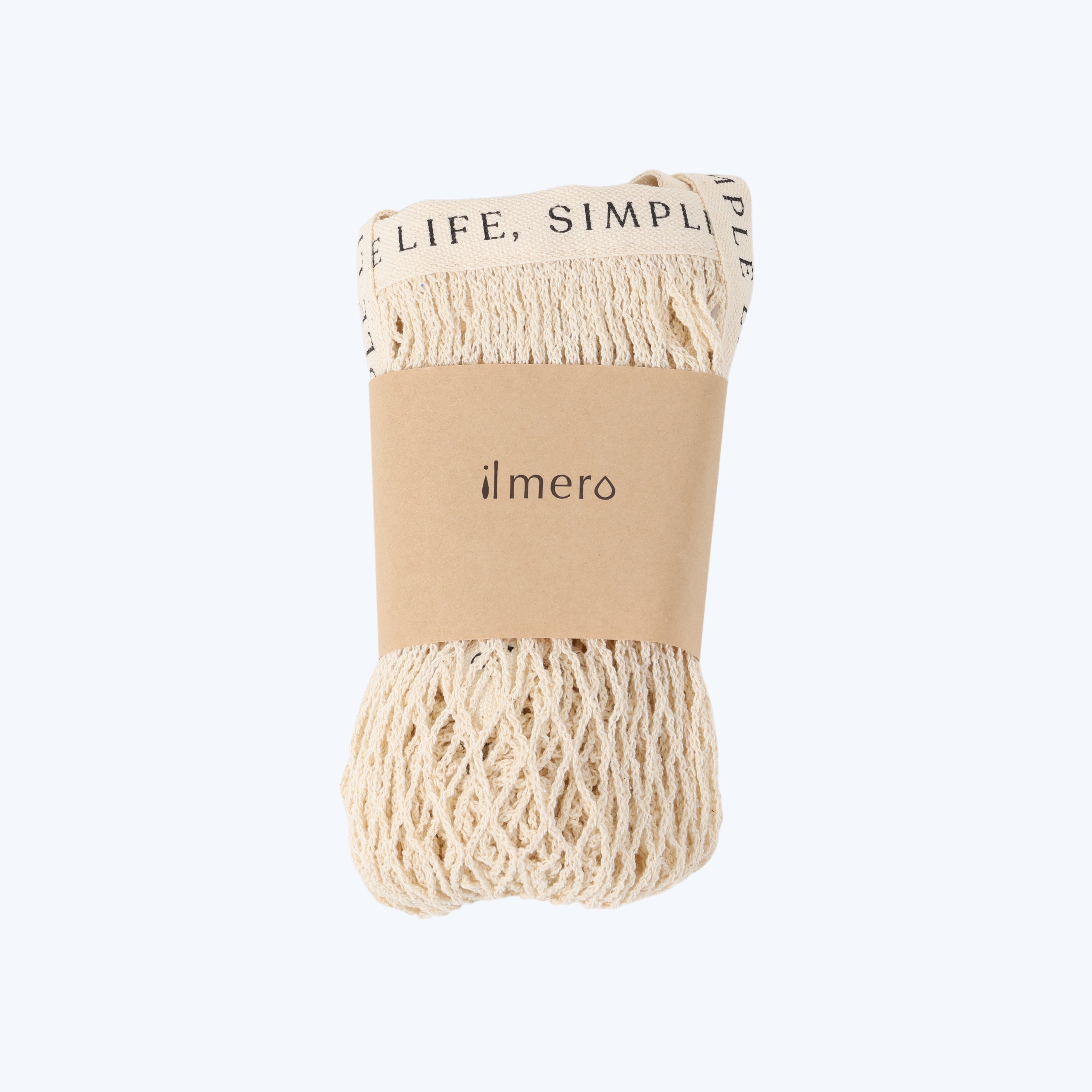 コットン素材のネットでできたエコバッグです。風通しの良さを活かして常備しておきたいお野菜を入れてキッチンのストック用としてのご使用も可能です。