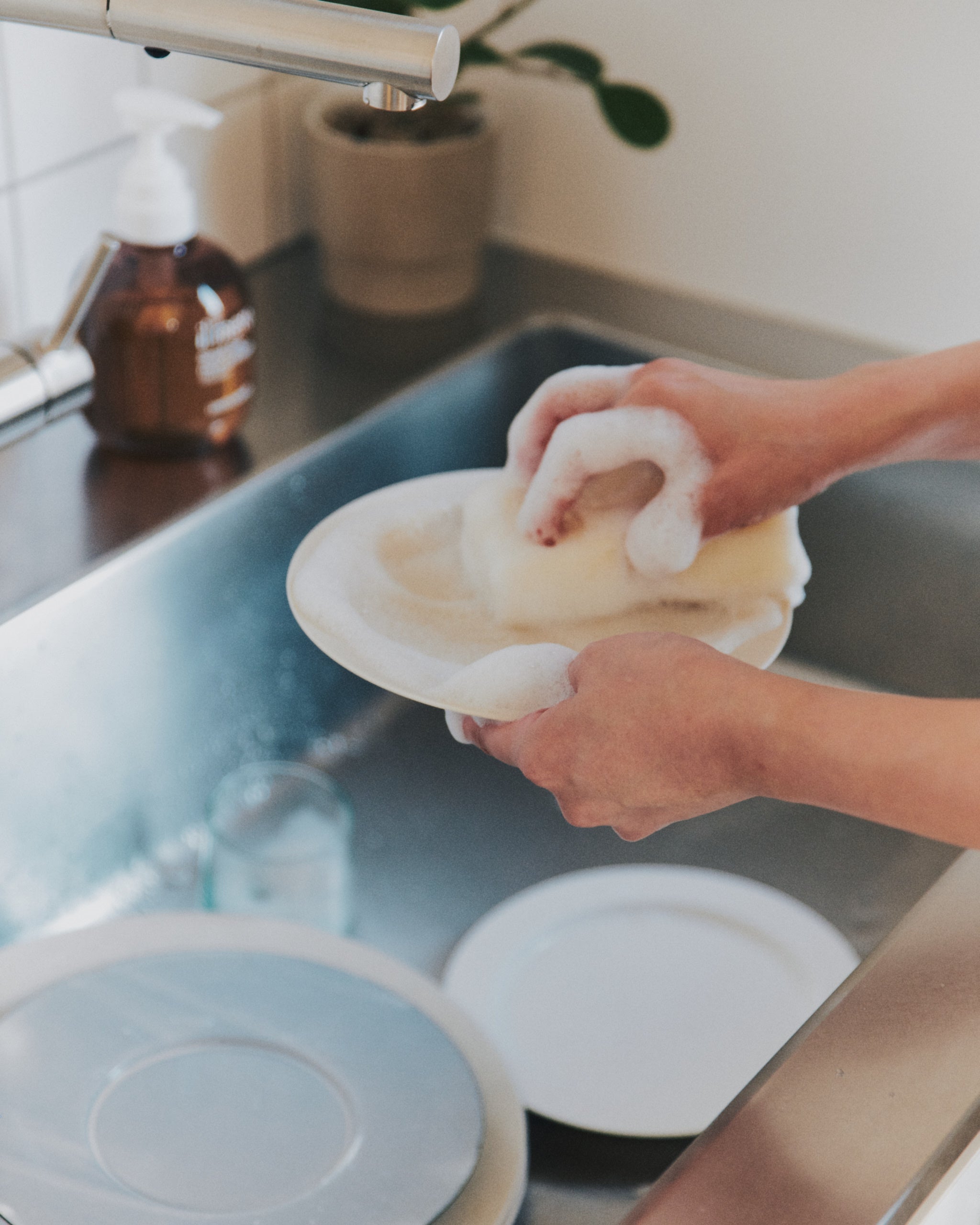 ヤシやオーツ麦などの植物由来100%の洗浄成分が手指にやさしく、安心な原料だけで作られているので野菜や果物の洗浄、ペットや赤ちゃんの食器洗いにもおすすめです。中性なので、手荒れが心配な方にも素手で使用してみて欲しい商品です。自然派洗剤とは思えないほどしつこい油汚れもすっきりと落とし、泡立ちや泡もちもよく頻繁に付け足さずに使用できます。天然精油ならではのやさしく爽やかなレモンジンジャーの香りで、毎日の食器洗いが楽しくなります。速やかに微生物によって分解され海を汚しません。また、シンク内の黒カビの原因となる石鹸・洗剤カスの発生を防止するので、使い続けるほどに排水溝のヌメりや悪臭も軽減されます。