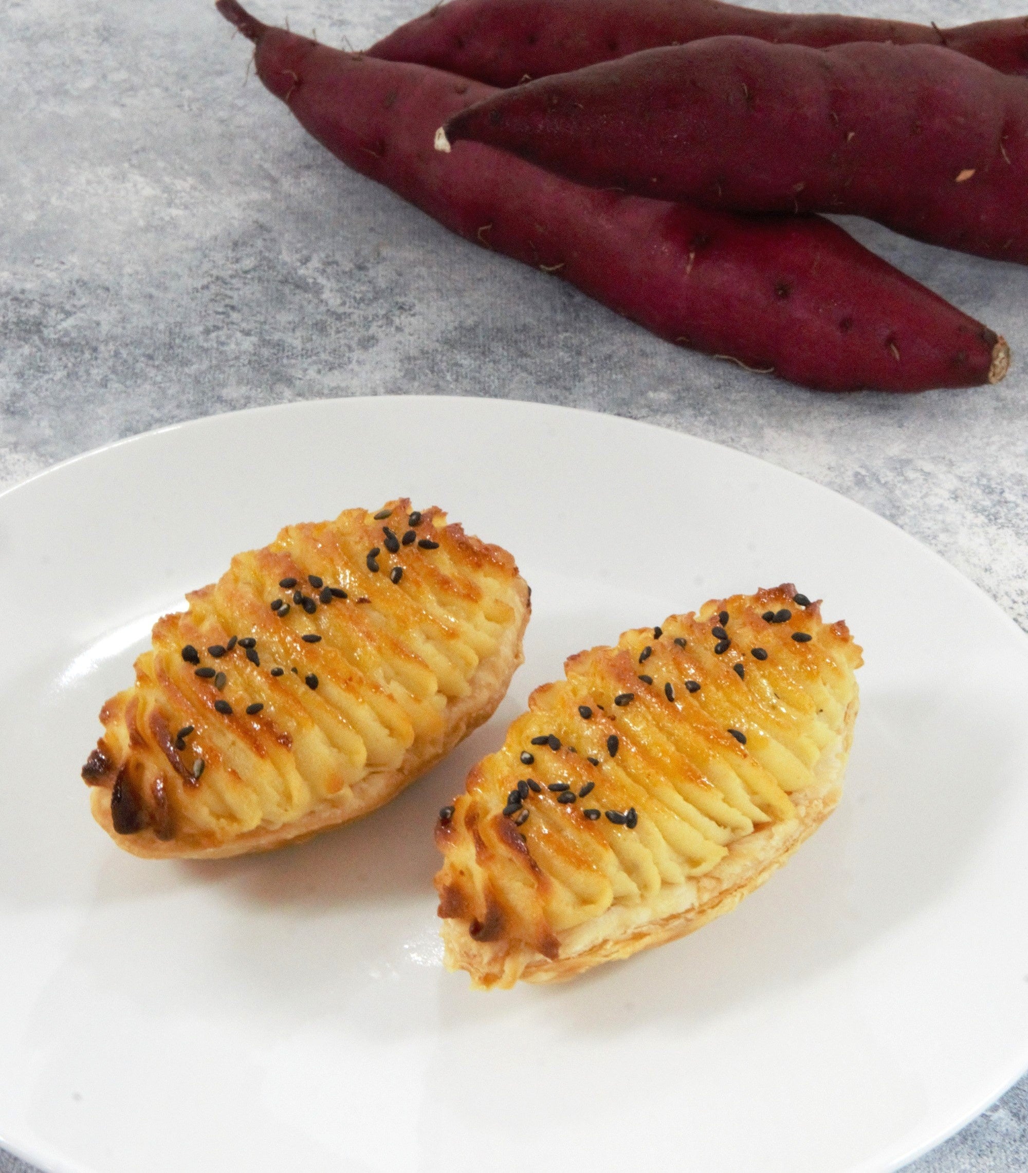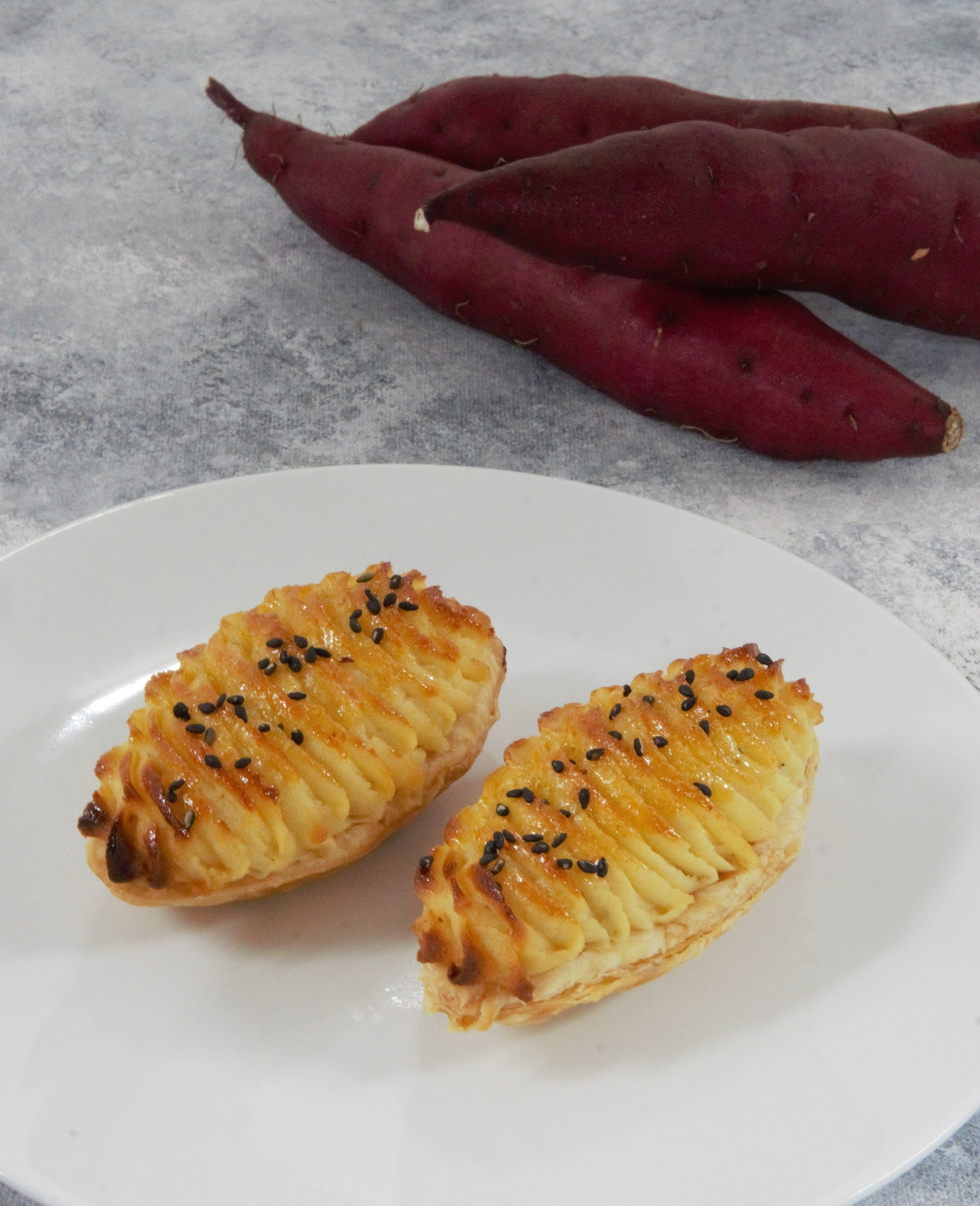 きめ細かな粉質と上品な甘さが特徴の五郎島金時をたっぷりと使い、上質なバターや生クリームと一緒にスイートポテトの餡に仕立て、サックサクのパイ生地にたっぷりと絞り出しました。