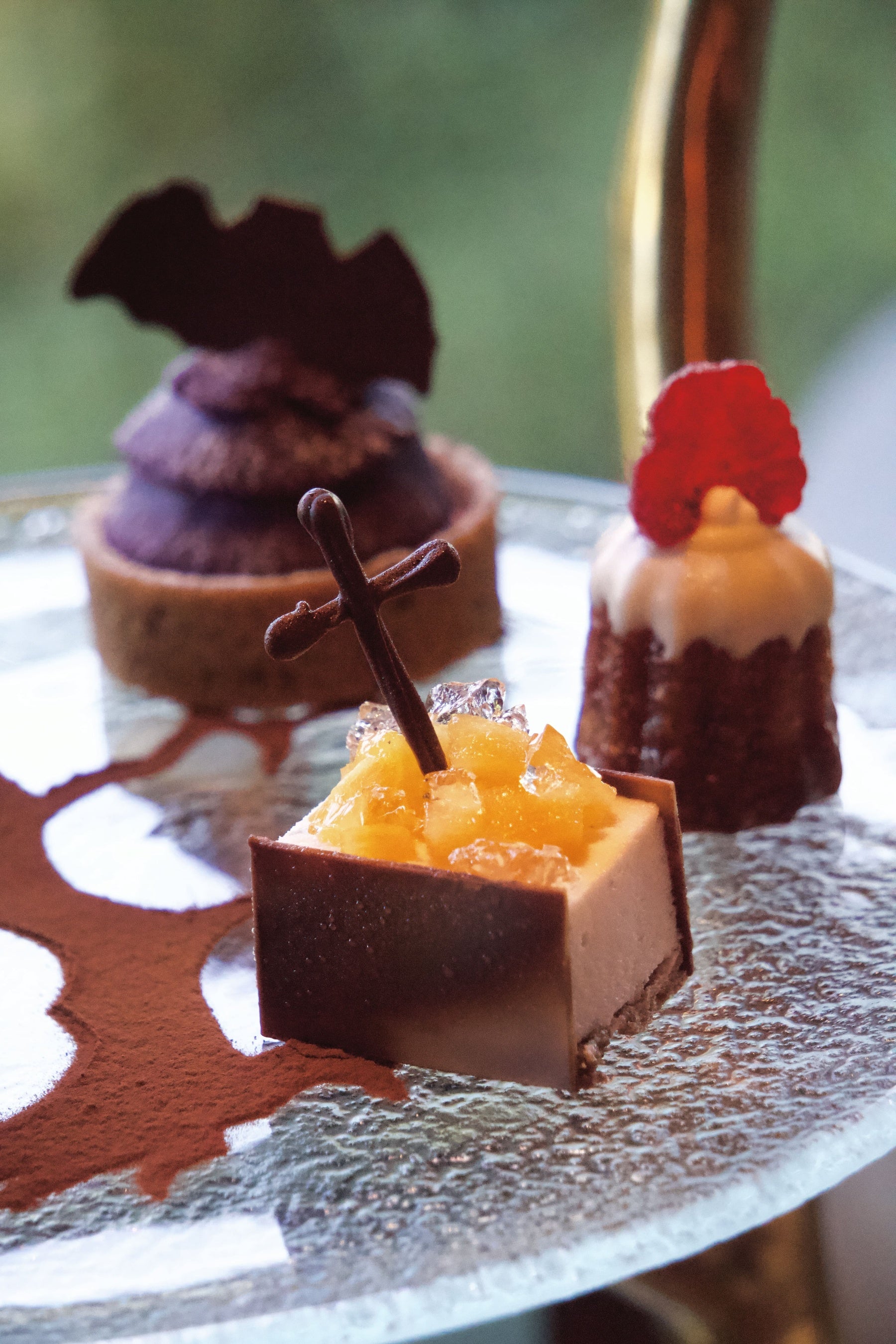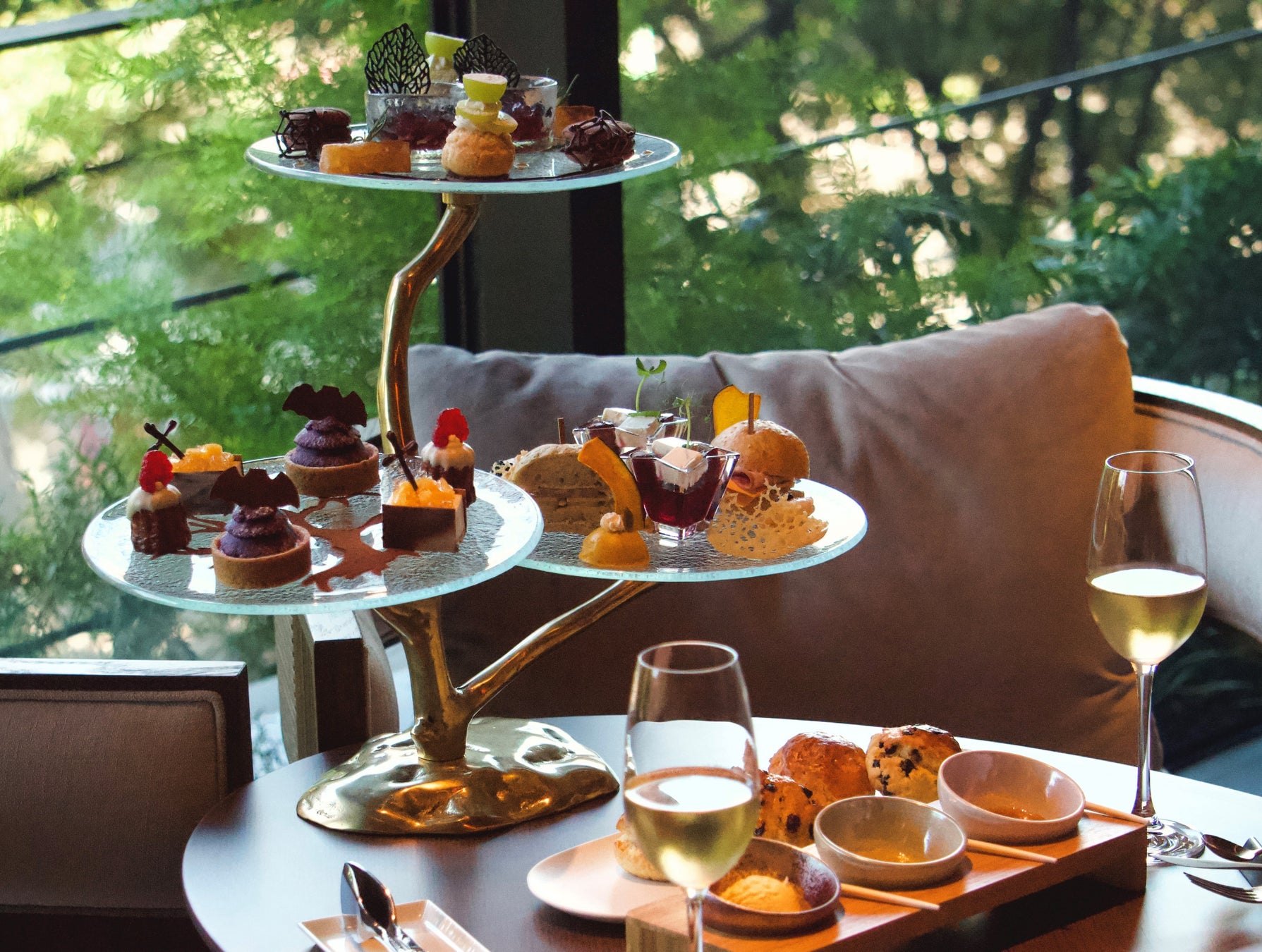 TIADのファースト・ハロウィン・シーズン。アフタヌーンティーは、愛らしいキャンドルやコウモリなどをモチーフとした7種のスイーツと4種のセイボリーでハロウィンを演出します。