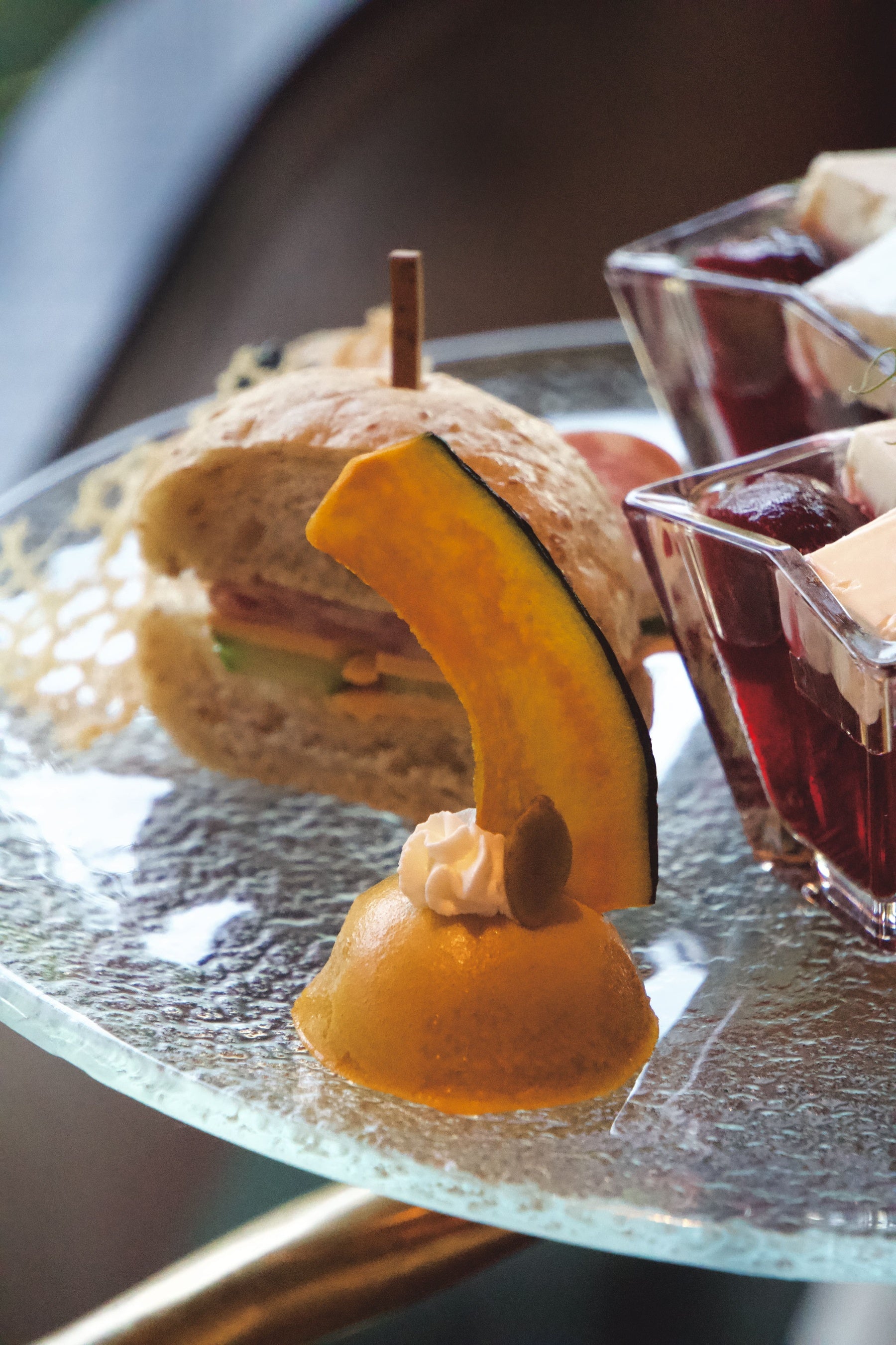 ペストリー担当の新海力三シェフとセイボリー担当の田中浩シェフのふたりが生み出すアフタヌーンティーは、見た目の美しさはもちろん、紫芋、栗、南瓜、ぶどう、柿など、旬な食材やフルーツをふんだんに使用し、上品な秋の味覚も存分にお楽しみいただけます。