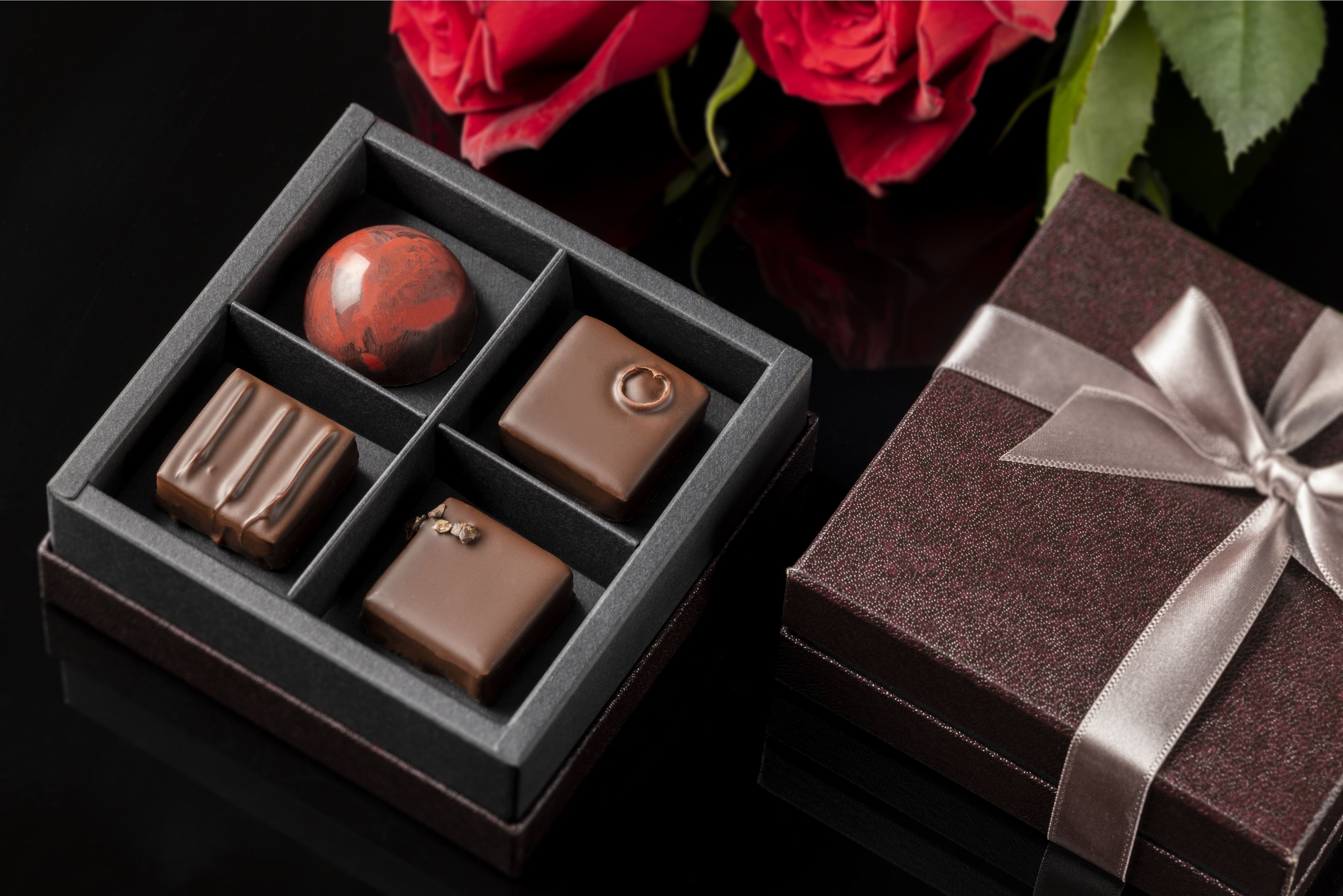 上品な味わいとシンプルな美しさにこだわった、エグゼクティブたちに相応しいプルマン東京田町のボンボンショコラアソートボックス。4種類のショコラはそれぞれ異なるフレーバーで、仕事のパフォーマンスアップの気分転換にもぴったりです。中でも「フランボワーズアニス」は、一口食べるとほのかな異国の甘さを感じさせる独特なスパイスの香りと、心地よい酸味のフランボワーズが際立つ一粒。正統派の中に忍ばせた大人の遊び心をスパイスに、バレンタインの高揚感を味わってみてはいかがでしょうか。プルマン東京田町のショコラティエの技術を詰めんだ、上質な4つの口溶けを楽しみください。