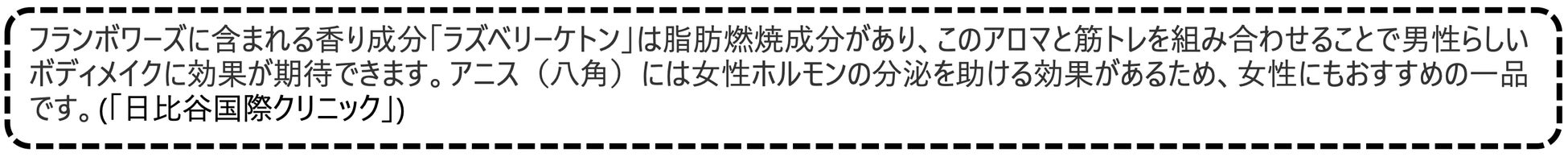 カカオと抹茶は「やる気」に影響するドーパミンの分泌を助けます。そしてドーパミンが上がるとテストステロン値も上がることが分かっています。また、カカオと抹茶は共に高血圧予防、動脈硬化予防、抗酸化作用による細胞の老化防止に効果があります。パッションフルーツにも同様に老化防止、高血圧予防、動脈硬化予防があるほか、美肌効果もあるため、ハツラツとした外見の維持にも役立ちます。そして、仕上げに添えるトリュフは、かのナポレオンが精力増強のために食したといわれており、トリュフの香り成分には催淫作用があるともいわれております。腸内環境を整えることはテストステロンアップに重要で、トリュフに含まれる食物繊維はその手助けをします。(「日比谷国際クリニック」)