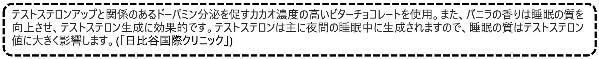 こちらのメニューはテストステロン値の上昇を導く、カカオや抹茶などの下記の素材をふんだんに使用しております。