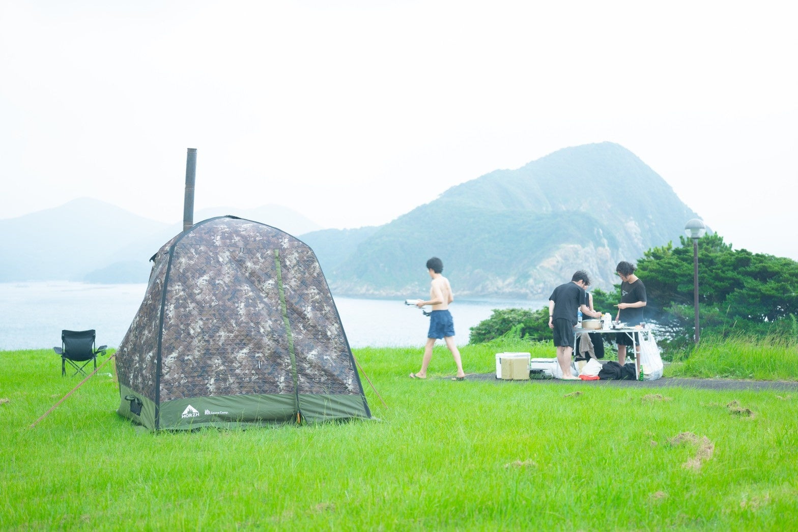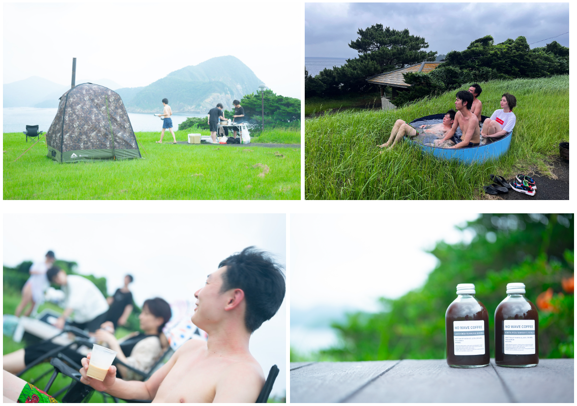 7月9日(日)に、長崎県五島列島に位置する福江島の魚ヶ崎公園キャンプ場にて、大自然の中で体験するゆったりとした空間として、サウナとバーベキューとコーヒーを提供するイベントを開催しました。夏空の下、海が目の前に広がる大自然の中で仲間と協力しながら過ごすゆったりとした時間と、サウナの中で自分に向き合う時間が融合し、普段では味わえない開放的な感覚を味わえました。