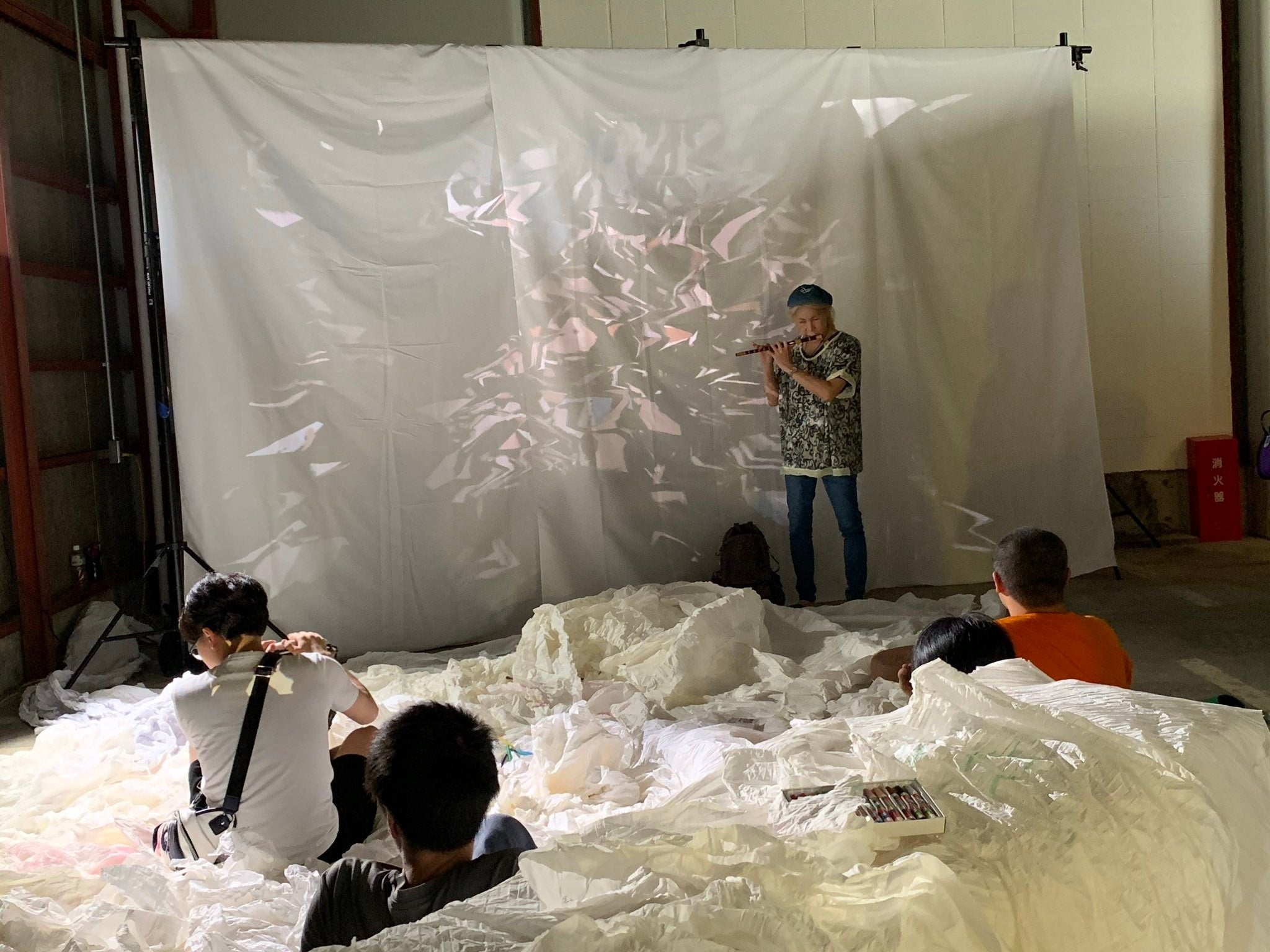 自由な空間で、何か決められたことをするのではなく各人が過ごしたいように過ごしていました。話し踊り演奏し絵を描き未言語肉態研究に参加したりとその瞬間やりたいことを表現する、その中でそこが居心地のよい空間になっていく感覚が不思議で楽しかったです。(Twitterより抜粋)