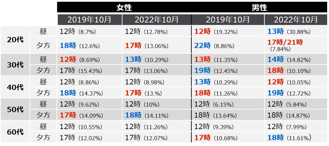 【特別編 コロナ比較】夕方のピーク帯が40代女性は1時間早まり、対照的に50代女性は1時間後ろ倒しになる傾向に