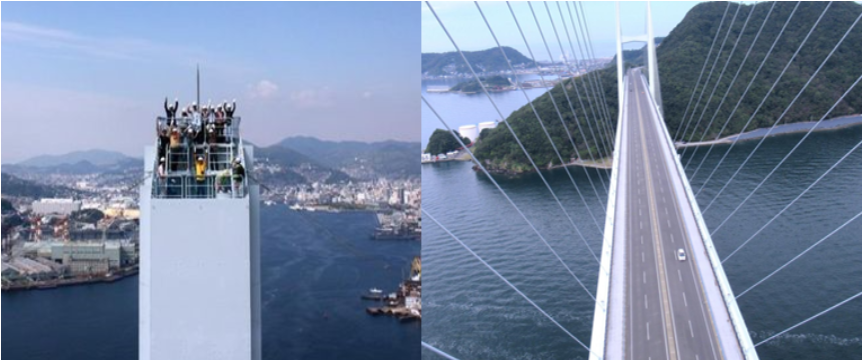 長崎県営バスターミナルを出発し、長崎港に架かる女神大橋へ。普段は立ち入れない女神大橋の主塔部分「てっぺん」まで、昇降階段と梯子で登ります。地上175mからの絶景をお楽しみください。