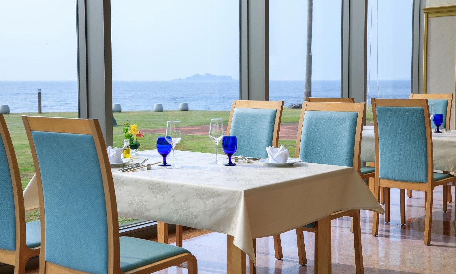 昼食は軍艦島が見えるレストラン、Ocean Resort NOMON長崎で海鮮丼とアジフライのランチ。