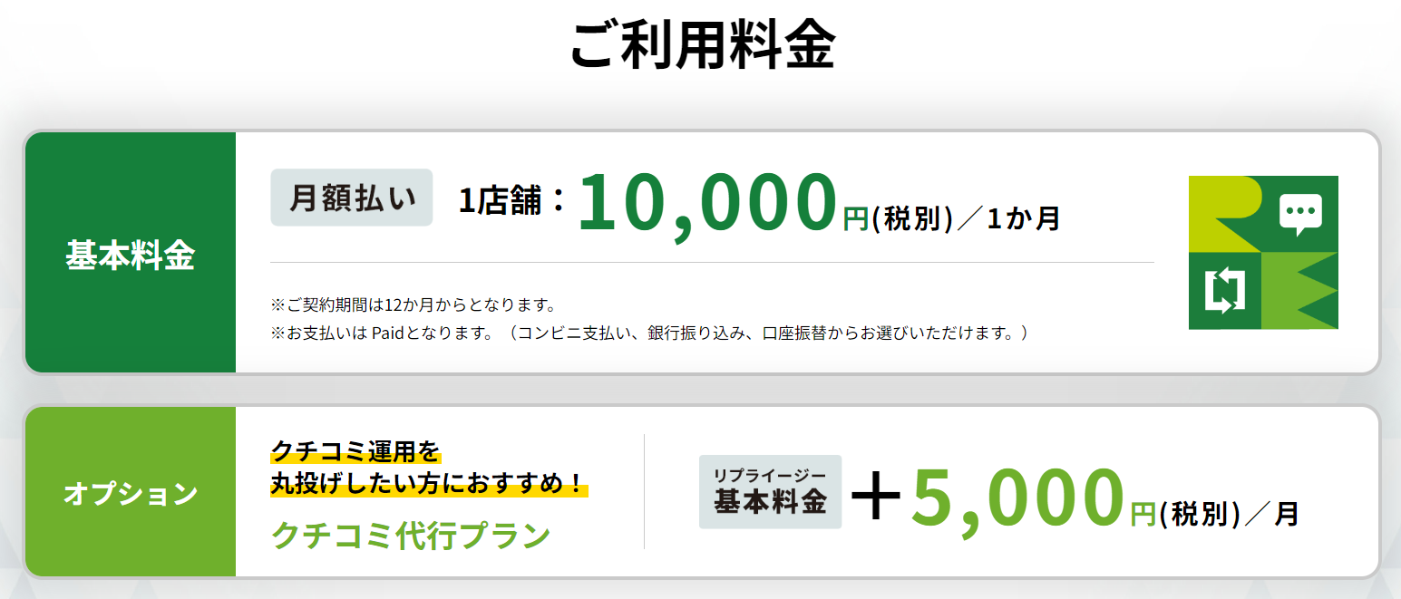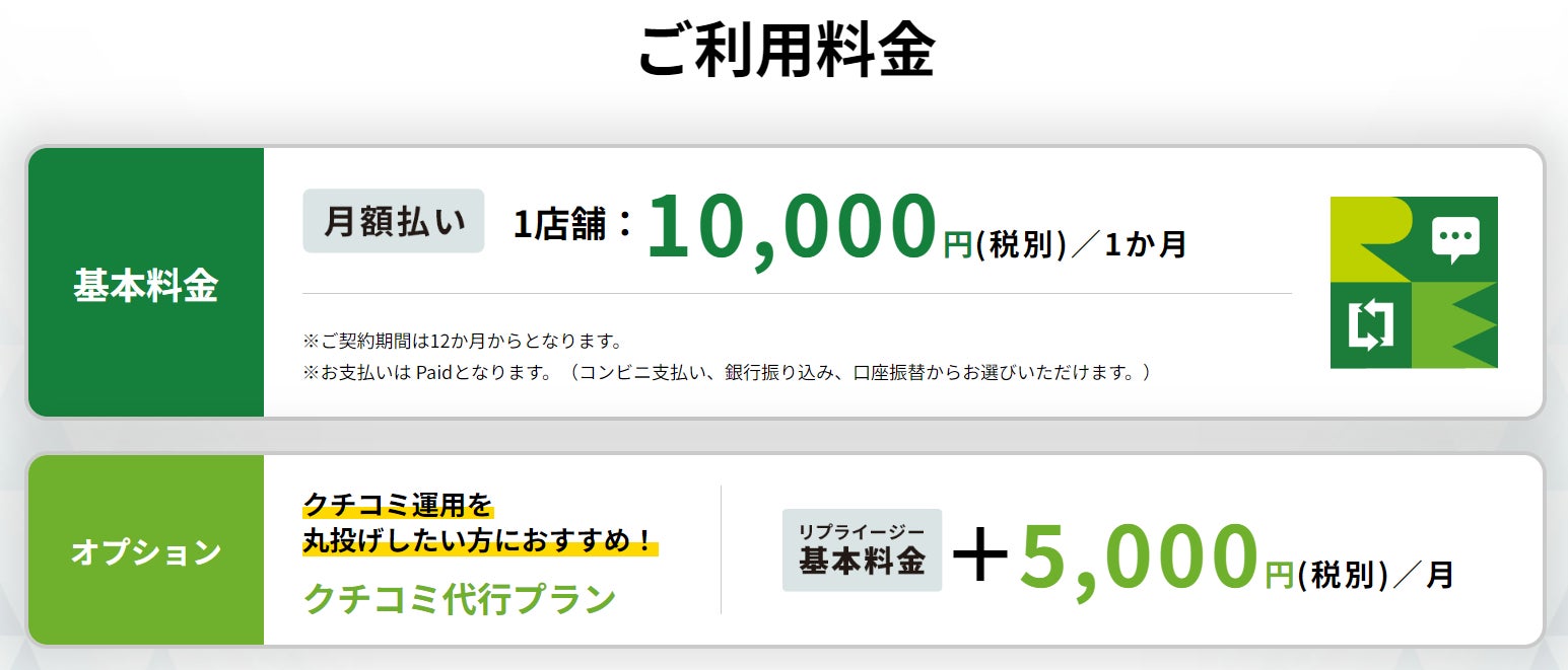 店舗単位!月額払いで利用可能!リーズナブルな料金設定