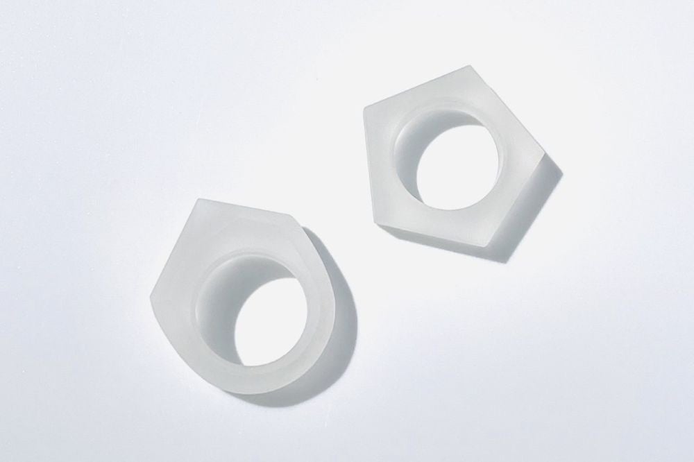 四角い板状に加工した水晶や瑪瑙などの石を研磨して、お好みの形のリングに仕上げます。(所要時間60分)