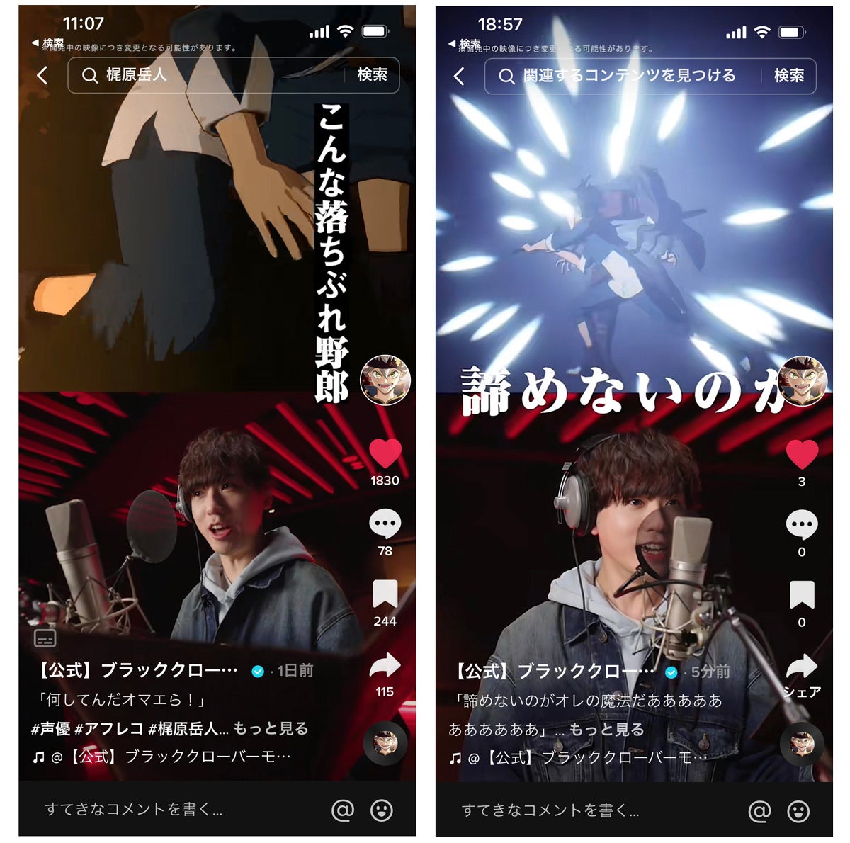 現在はアスタ役の梶原岳人さん、ユノ役の島﨑信長さんのアテレコ動画を公開中!迫力ある演技にご注目ください。