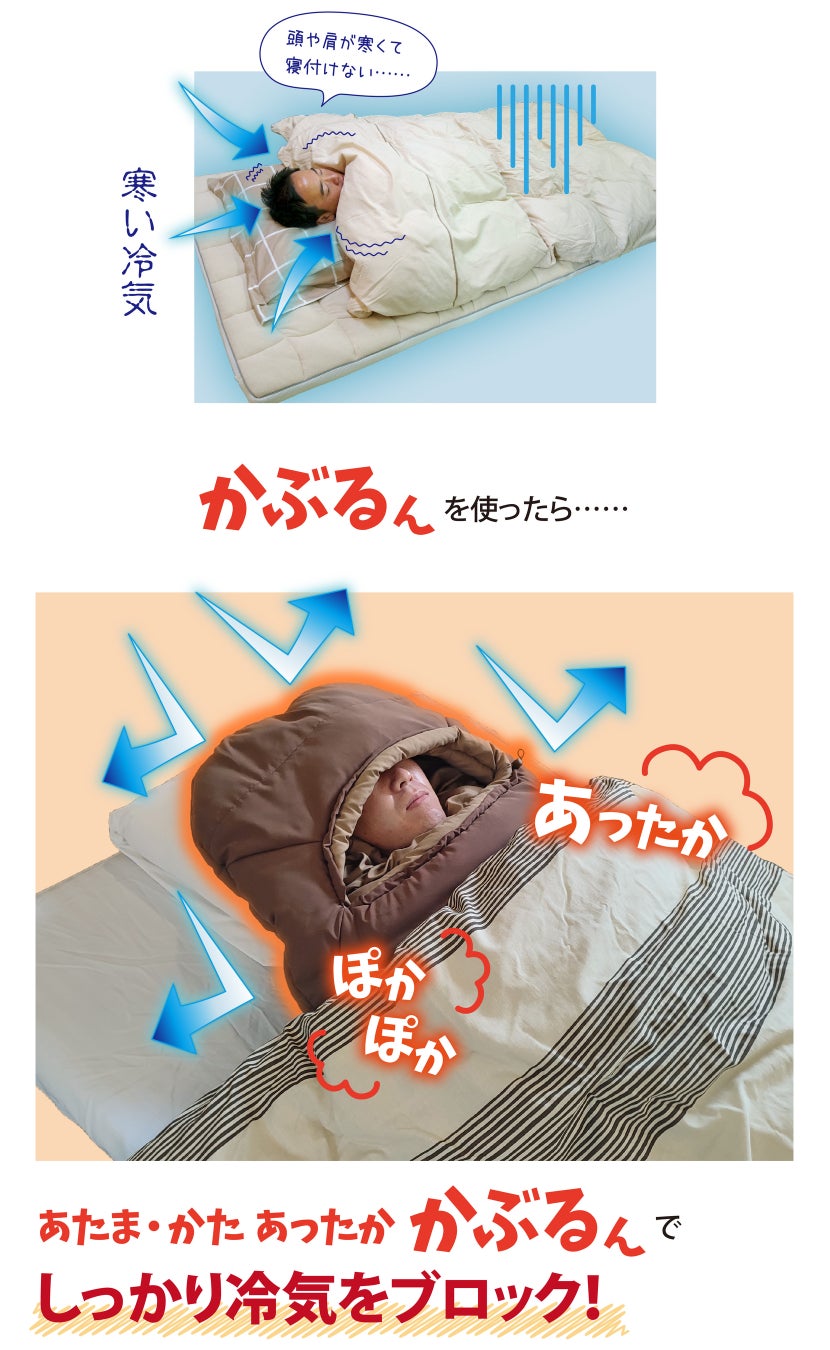 布団に入っても頭が寒い!その悩み、頭・肩あったか「かぶるん」で解決できます!