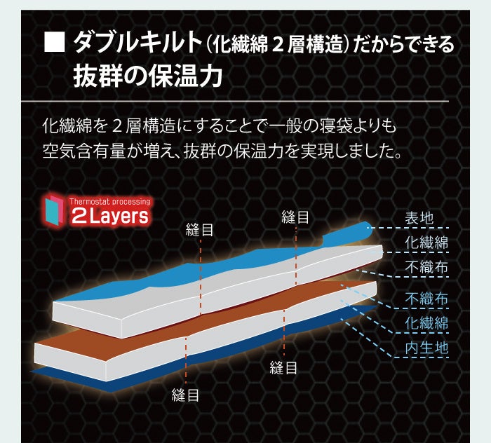 Thermo Keeper(サーモキーパー)機能により、今まで以上の寝心地と保温力で、暖かく快適に眠ることができます。