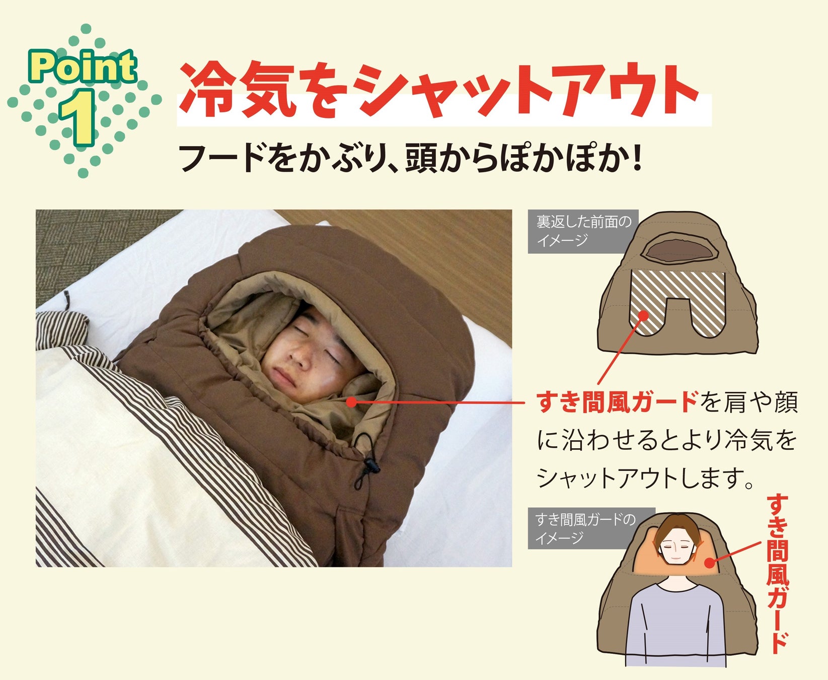かぶれる寝袋 頭・肩をあたためて温活 冷気が入らないあったか布団 かぶるん