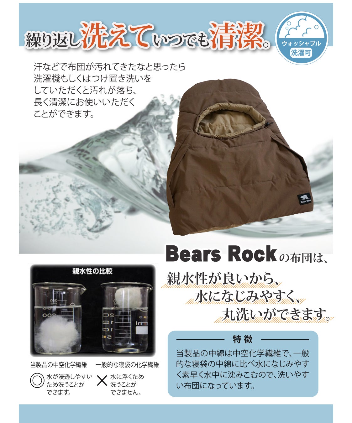 水になじみやすいので、寝袋を丸洗いしやすい仕様になっています。また、乾きやすいので、