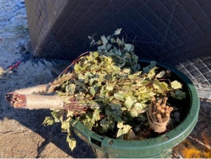 会場内でラトビアの農家から直接仕入れたヴィヒタを使って、ウィスキング体験ができます!!