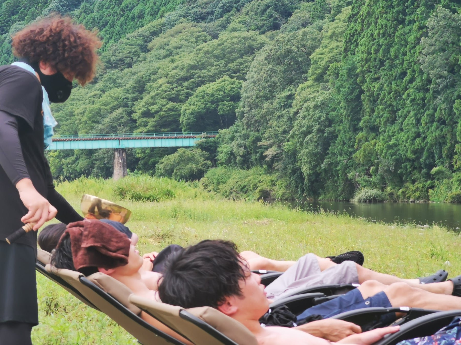 シンギングボウルなどを使用したプロによるヒーリングが外気浴で体験できます!