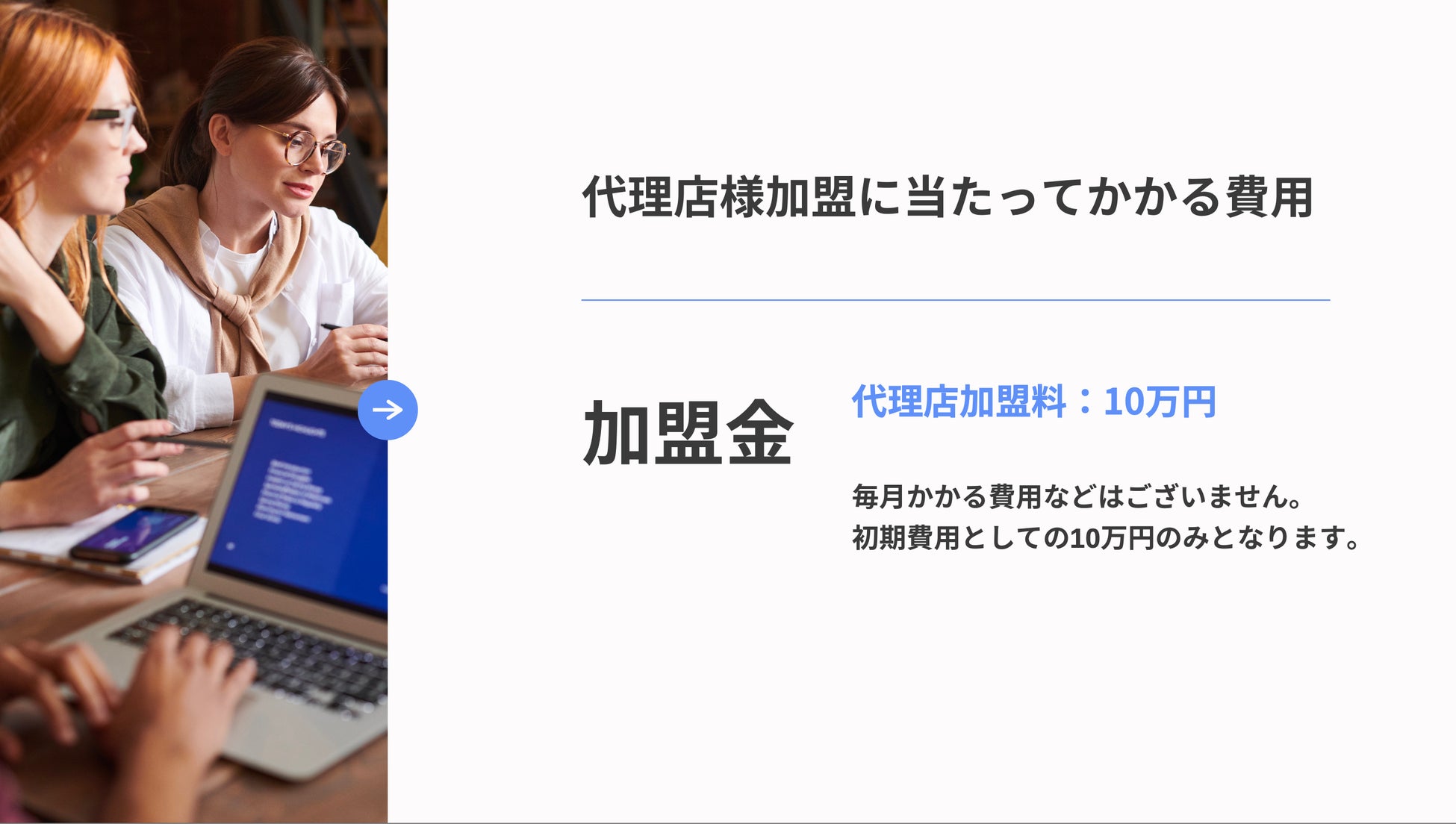 代理店様にしていただくことは見込み顧客のトスアップのみで実際の実務は本部が全て行います。ゴールとしてはweb面談の実施までで、その後の運用に関しては弊社で行います。