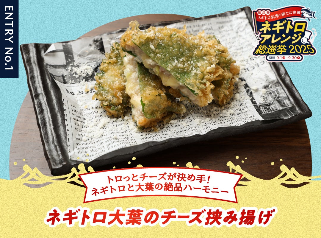 とろけるチーズとまろやかなネギトロを、大葉で包んでカリッと揚げた香ばしいひと品。