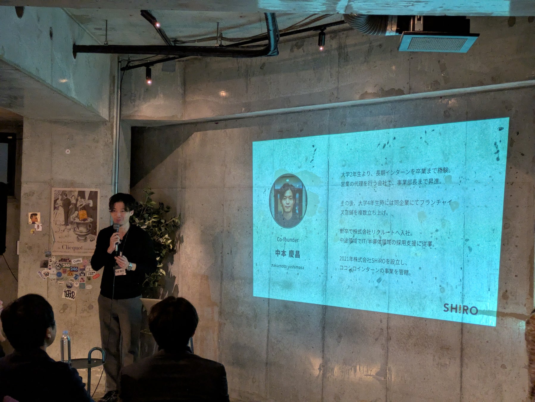 中本は、長期インターン市場の成長において私たちが果たしてきた役割を振り返りつつ、これからの目標について熱く語りました。