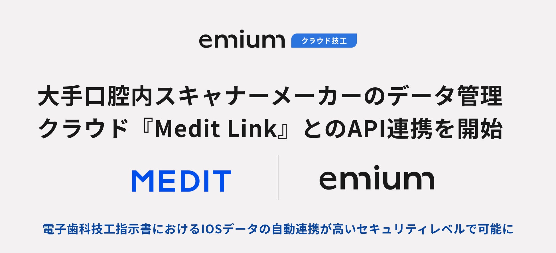 エミウムの歯科技工基幹業務クラウド『エミウム クラウド技工』、大手口腔内スキャナーメーカーのデータ管理ソフト『Medit Link』とのAPI連携を開始