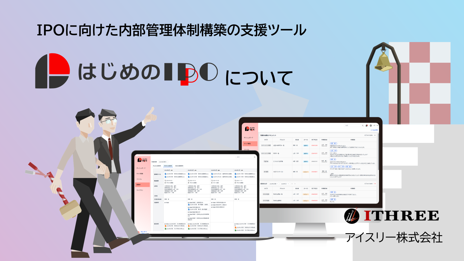「IPOに『楽』を提供する」を経営理念に、効率的なIPO準備を支援するツール「はじめのIPO(はじめのいっぽ)」を提供するアイスリー株式会社(本社:東京都中央区、代表取締役社長:金 誠智、以下「当社」という。)は、このたび、東京証券取引所 前上場審査部長の潮田一成氏を顧問として迎えましたことをお知らせいたします。