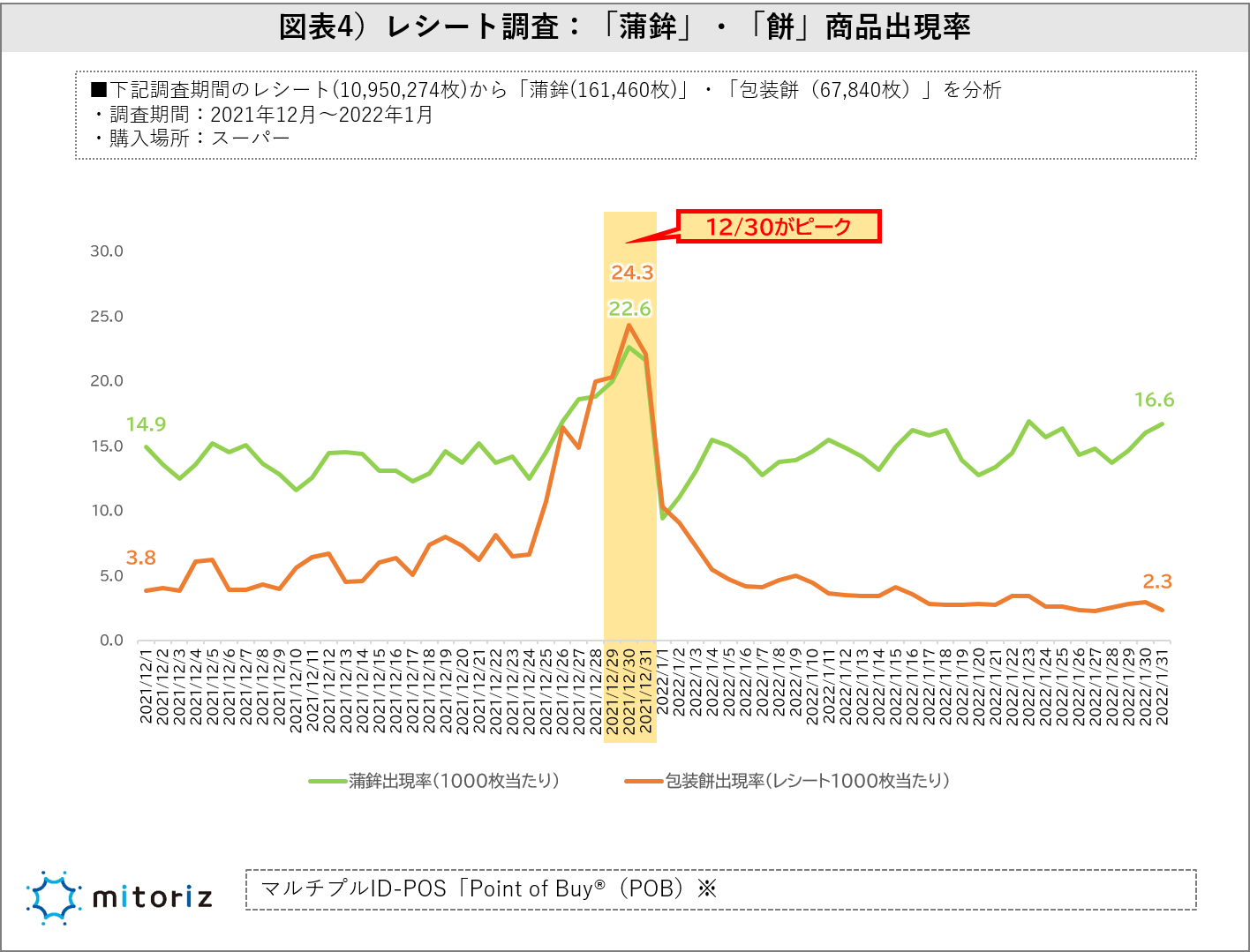 【レシート分析】「かまぼこ」・「餅」を購入するピークは12月30日
