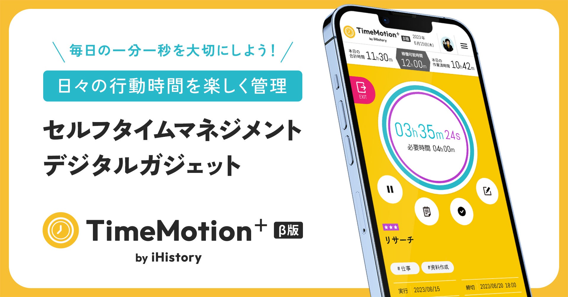 スタートアップのiHistory Inc.が、ジブンの日々の行動時間を管理できる 新デジタルガジェット『 TimeMotion+ 』ベータ版Ver1.0を新規リリース!