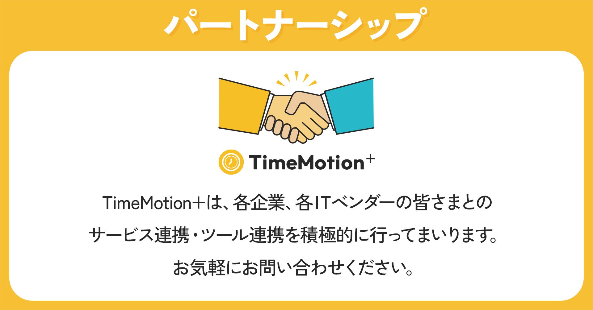 TimeMotion+ とサービス連携・ツール連携をご希望の企業、各ツールのサービスベンダーの皆さま、お気軽にご連絡ください。