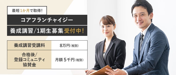 FC加盟事業の成功可能性の最大化を図る資格ならびに養成講習「コアフランチャイジー」の1期生募集を開始いたしました。