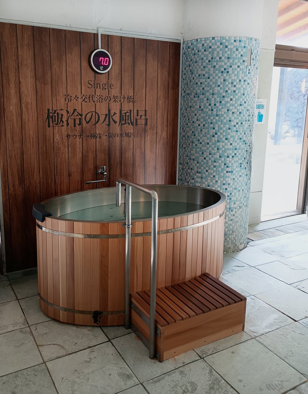 従来の15℃の水風呂に加えて、この8℃冷水風呂が加わることで、お客様それぞれの体調やその日のコンディションに合わせて、水温を選択できるようになります。
