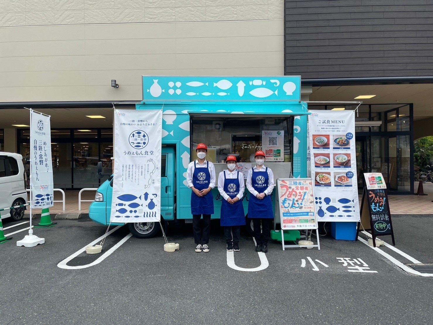 三陸産や常磐産のできたての“うめぇ!”メニューをキッチンカーや店頭で無料試食提供!