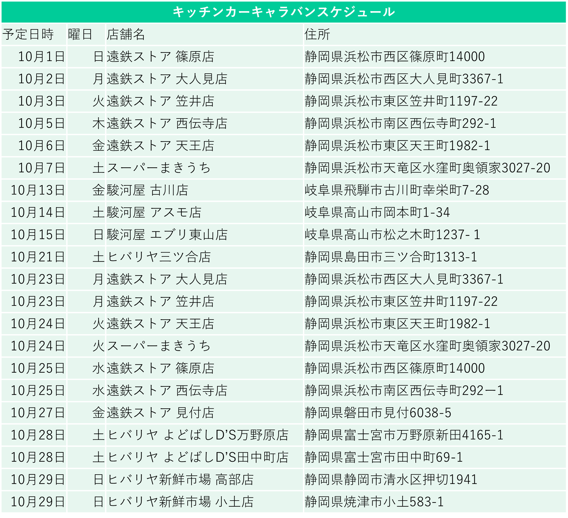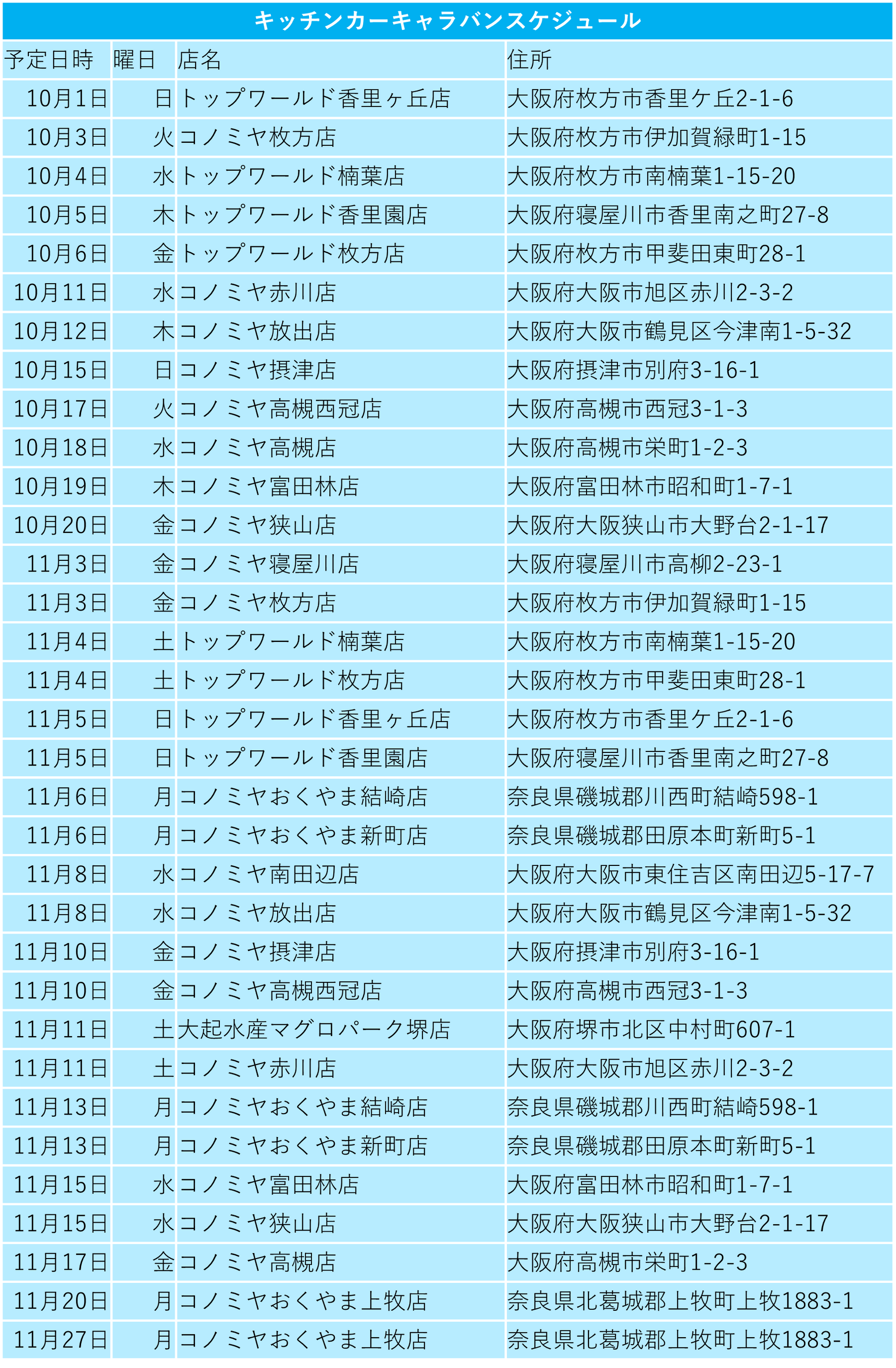 ●実施エリア:うめぇもん!キャラバンキッチンカー2台