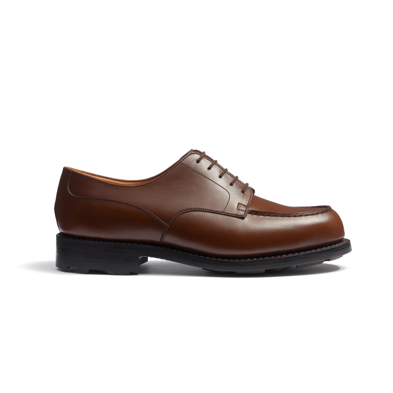 ハントダービーでも使用されている「ロシアンフィニッシュカーフ」は、伝統的なロシアンカーフをイメージして鞣したもので、オイルの含有量が多くふっくらとした質感が特徴。鞣しに時間と手間がかかり製造が難しい希少なレザーを使用した特別なアイテムとなっています。今年は新色のダークブラウンが登場。さらに、ソールやウェルトがインラインにない特別仕様のローファーやゴルフなど豊富なバリエーションをご用意しております。