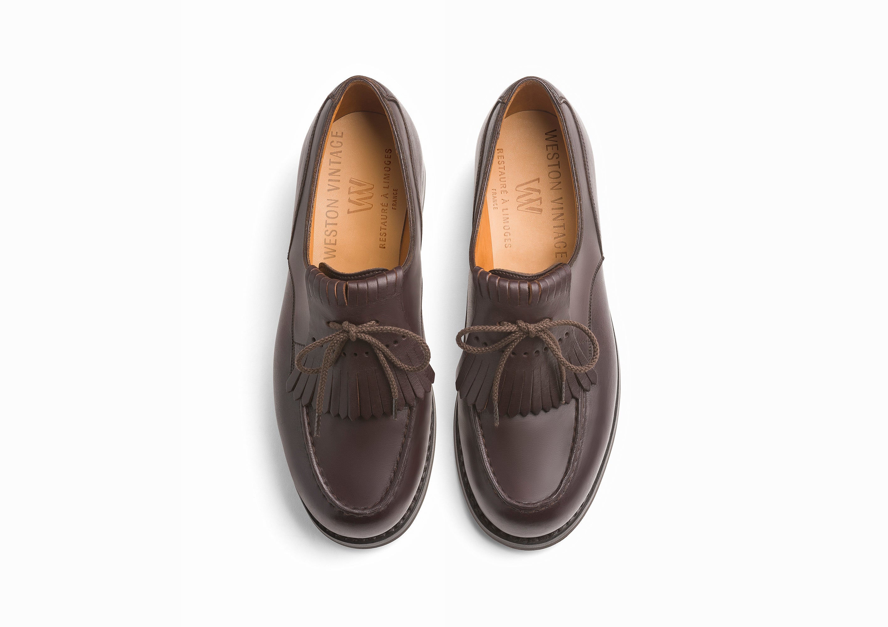 大切に長く履き続けてもらいたいという願いから始動したプロジェクト『ウエストン・ヴィンテージ』は、役目を終えたジェイエムウエストンのシューズを回収、リモージュの工房で修理・修復を施し、再生する取り組みです。新しくソールやインナーも交換されたシューズは、新品と見間違えるような美しさと、以前の持ち主が大切に履き込んだ風合いが加わった、一足一足の雰囲気が異なる一点物のシューズとして生まれ変り、店頭に並びます。