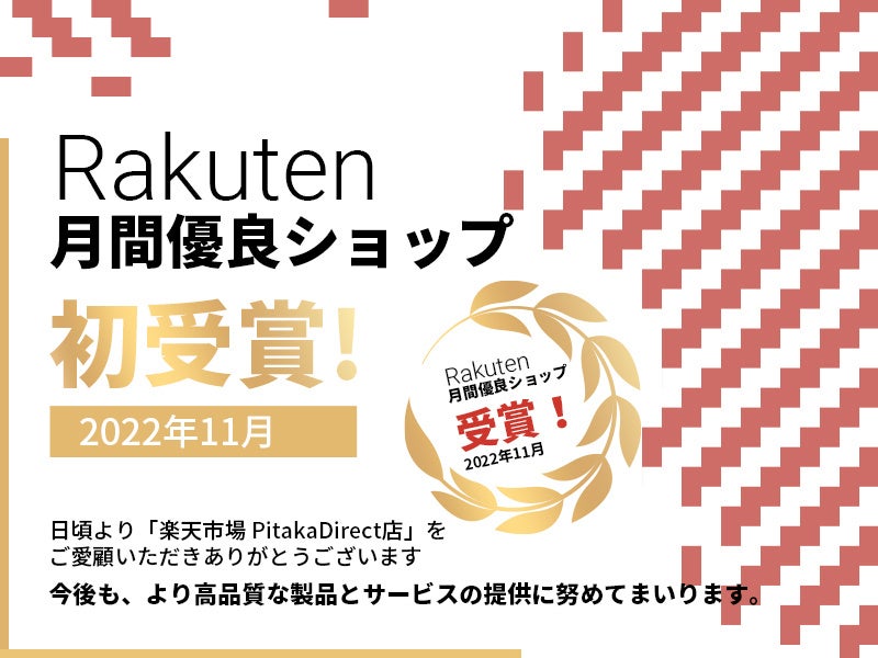 楽天市場 PitakaDirect店、「11月度月間優良ショップ」を初受賞!「PITAKAブラックフライデー2022」、本日から開始 「#pitakaのある生活」半額返金・投稿キャンペーンも同時開催!
