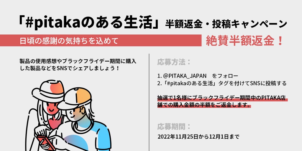 「PITAKAブラックフライデー2022」の実施にあわせて、下記の特別キャンペーンを開催します。