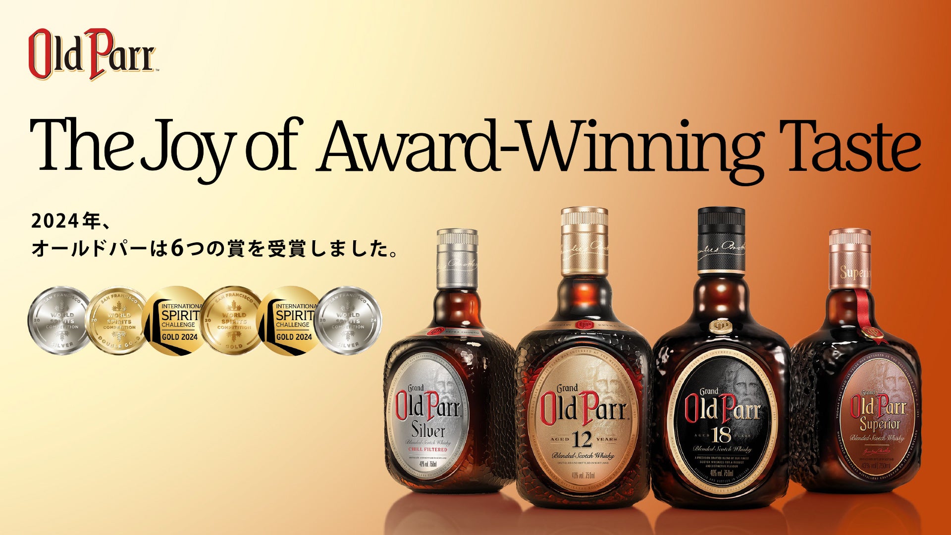 ブレンデッドウイスキーに不朽の価値を与え、末永く後世に届けたいとの願いが込められて、英国史上最長寿と言われるトーマス・パーの愛称に因んで名づけられた「オールドパー」は、2024年、世界的に権威のあるSFWSC・ISC *²という2つのコンペティションで合計6つの賞を受賞いたしました。ブランドを代表するボトル「オールドパー 12年」は、SFWSCにて国際的なスピリッツ業界の専門家による審査の結果、すべての審査員から「金賞」を獲得した商品だけが得られる「最優秀金賞(ダブルゴールド)」を受賞するなど、2つのコンペティションで高く評価されました。