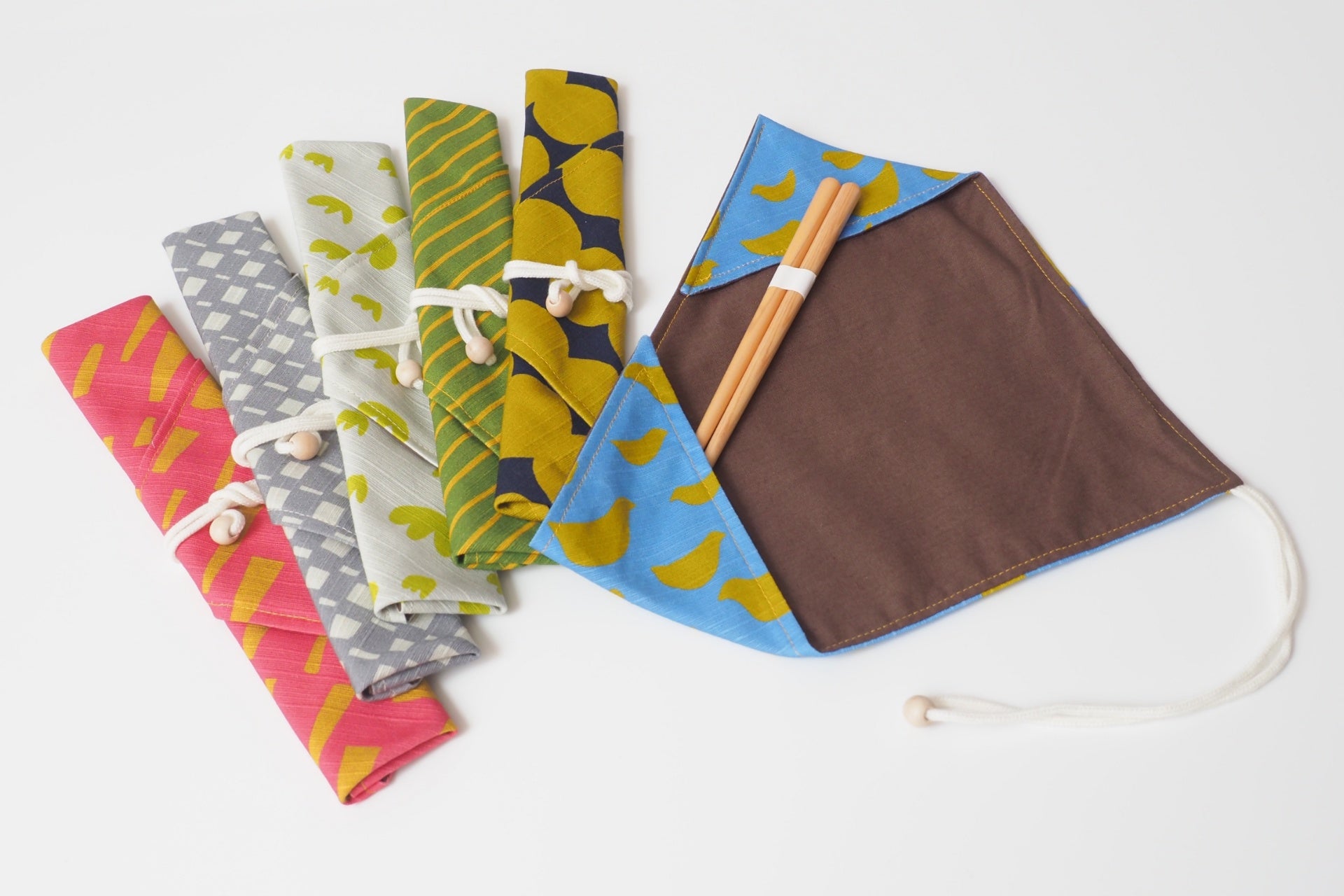 お箸を入れてくるくる巻きヒモで固定するだけの箸袋とお弁当用に最適な18cmのコンパクトサイズのお箸が セットになっています。