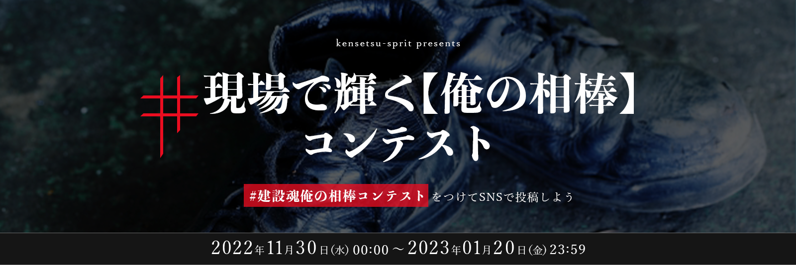 あなたの現場での「一番の相棒」は何ですか?お気に入りの工具や作業着、安全靴…あるいは車や同僚かもしれません。現場の「相棒」とあなたの間には、その人にしかないストーリーがあるはずです。入賞した方にはAmazonギフトカードを贈呈いたします!皆さんの様々な想いが詰まった相棒写真をぜひ投稿してください。
