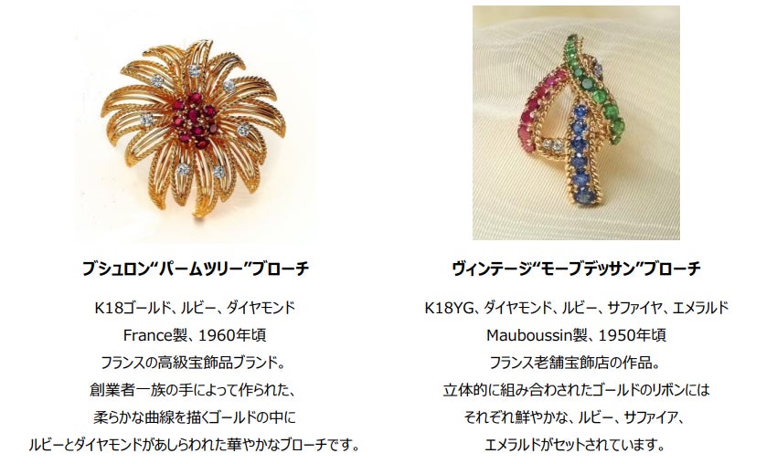 ブシュロン・カルティエなどのアンティークジュエリー約150点を展示 総額2億円相当規模の展示は大阪初開催 「芝翫香210周年特別企画 アンティークジュエリー展」