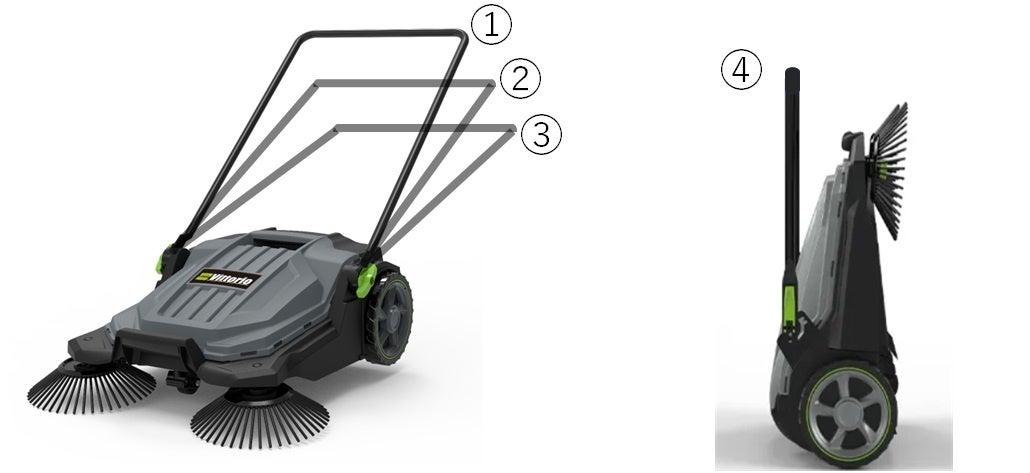 ハンドルは使用者の使い易い高さに調整いただくために4段階(①~④)に調整可能。